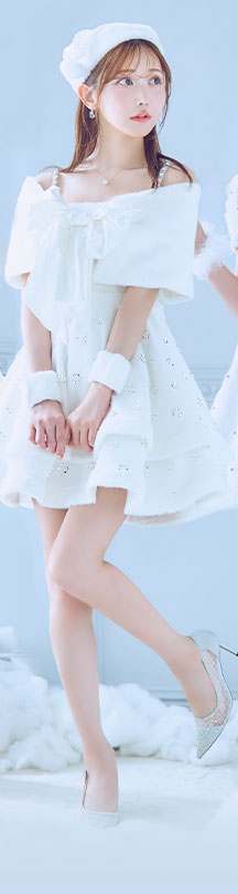 ラインストーンをあしらって華やかさを演出。フレアスカートで可愛さをUPしてくれる1着です。