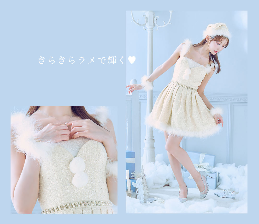 雪のように美しく煌めくラメツイードサンタコスプレ♥