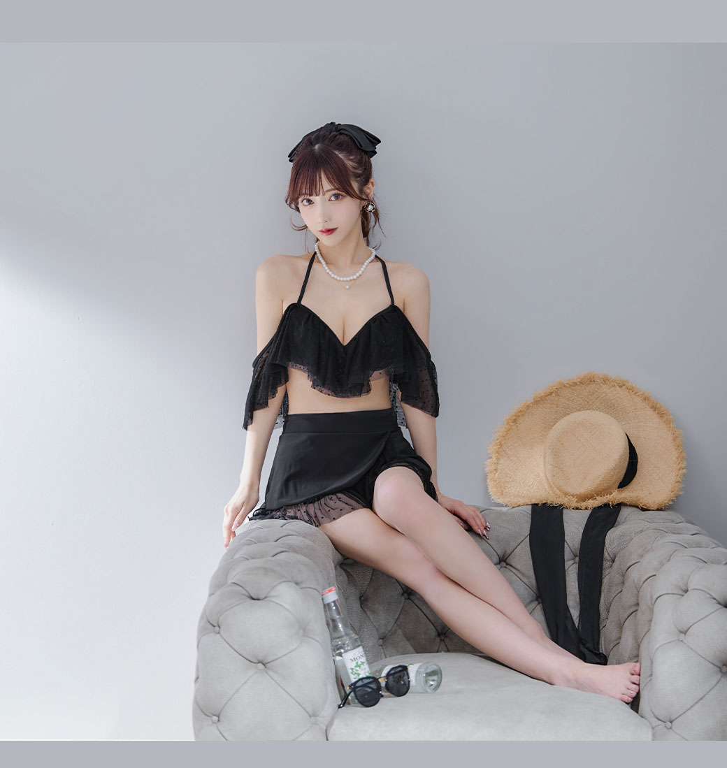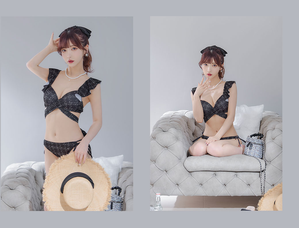 【 バックリボン肩フリルツイード柄ビキニ 】