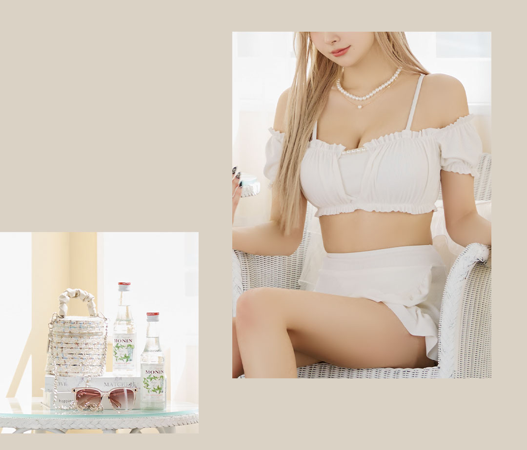 当て布をつけても外しても可愛く着こなせるデザイン。お気に入りスタイルでビーチコーデ。