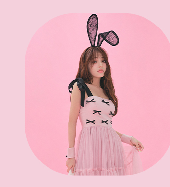 ピンクのふわふわチュール×ブラックリボンのコンビネーション。