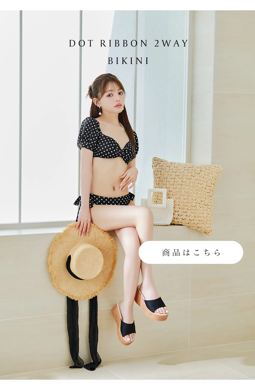 ドット柄のリボン風トップスで大人ガーリーに♥