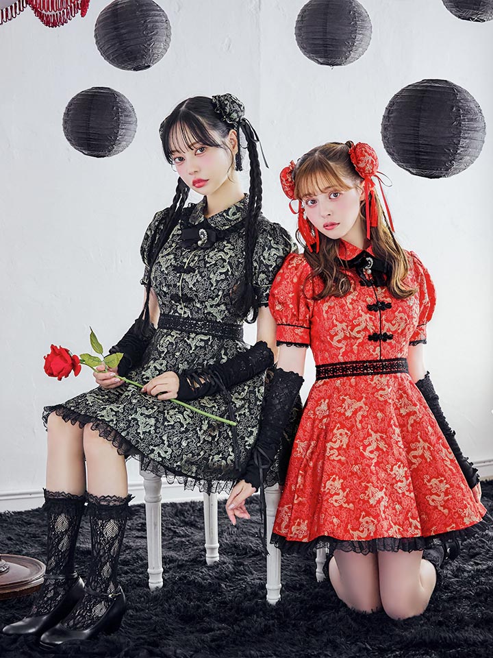 【即日発送!】【ハロウィン】アームウォーマー付きフレアスカートチャイナ 【コスプレ点セット】 【S-XLサイズ/2カラー】(SE01YN)[HC03]