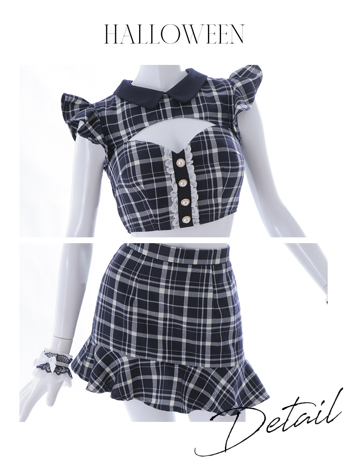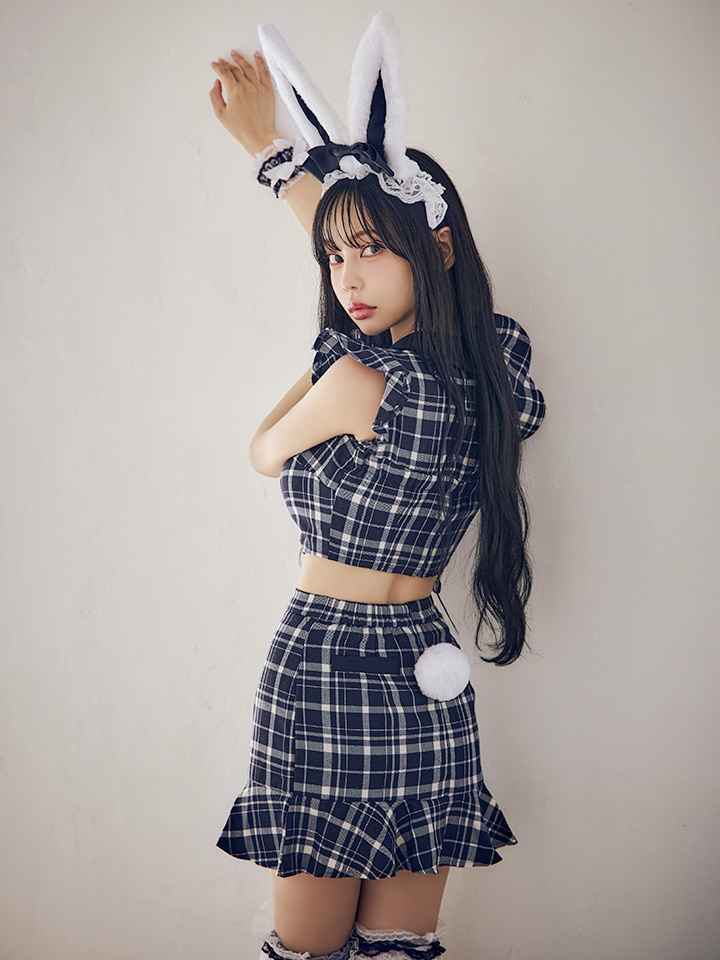 【SALE】【ハロウィン】 チェックバニーセットアップ 【コスプレ6点セット】【XS-Lサイズ/2カラー】[HC03]