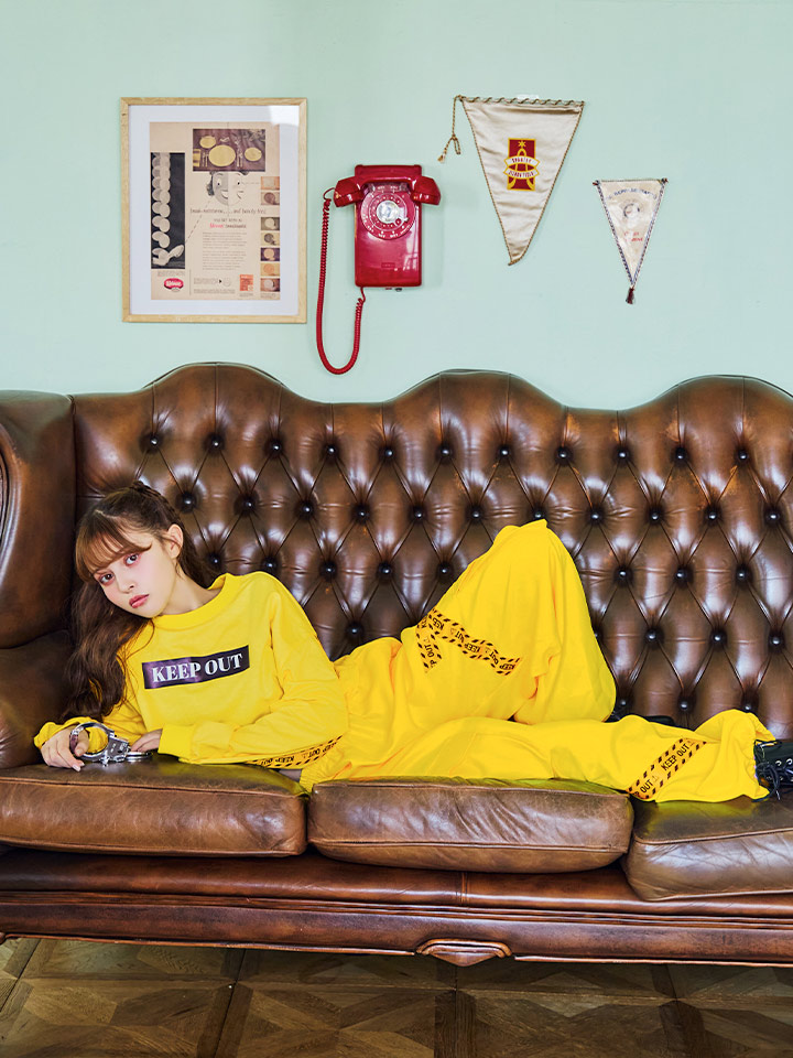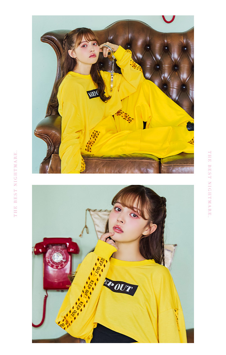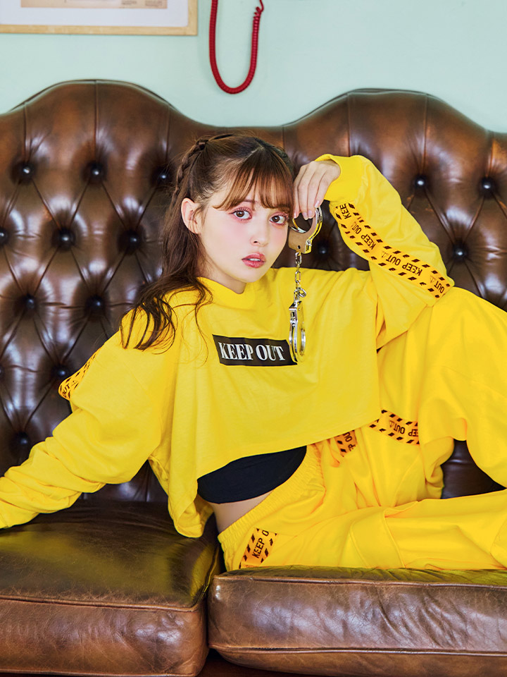 目立てるイエローカラーとKEEPOUTプリントが可愛い!