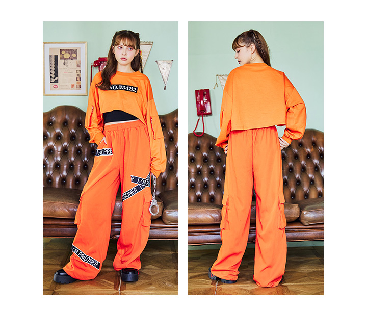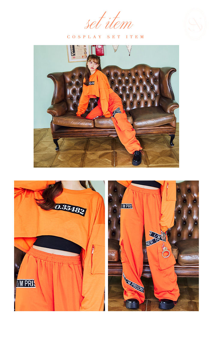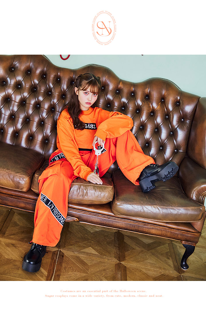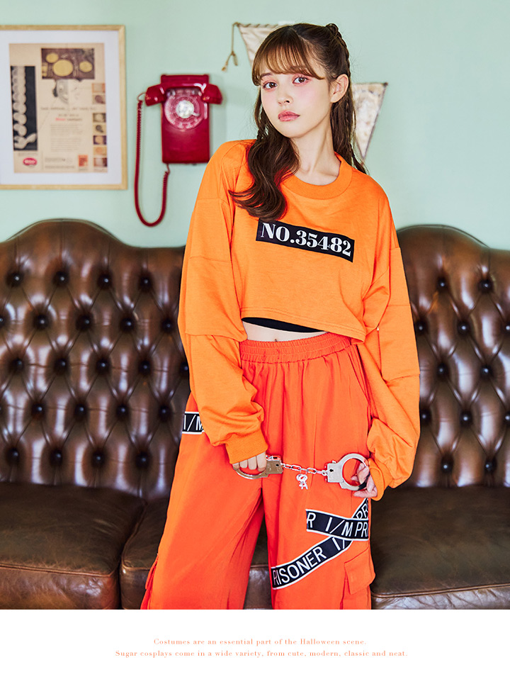 囚人服 囚人コスプレ プリズナーガール 文化祭 体育祭 フェス イベント お揃いコーデ おそろいコーデ 学園祭 仮装 オレンジ おれんじ