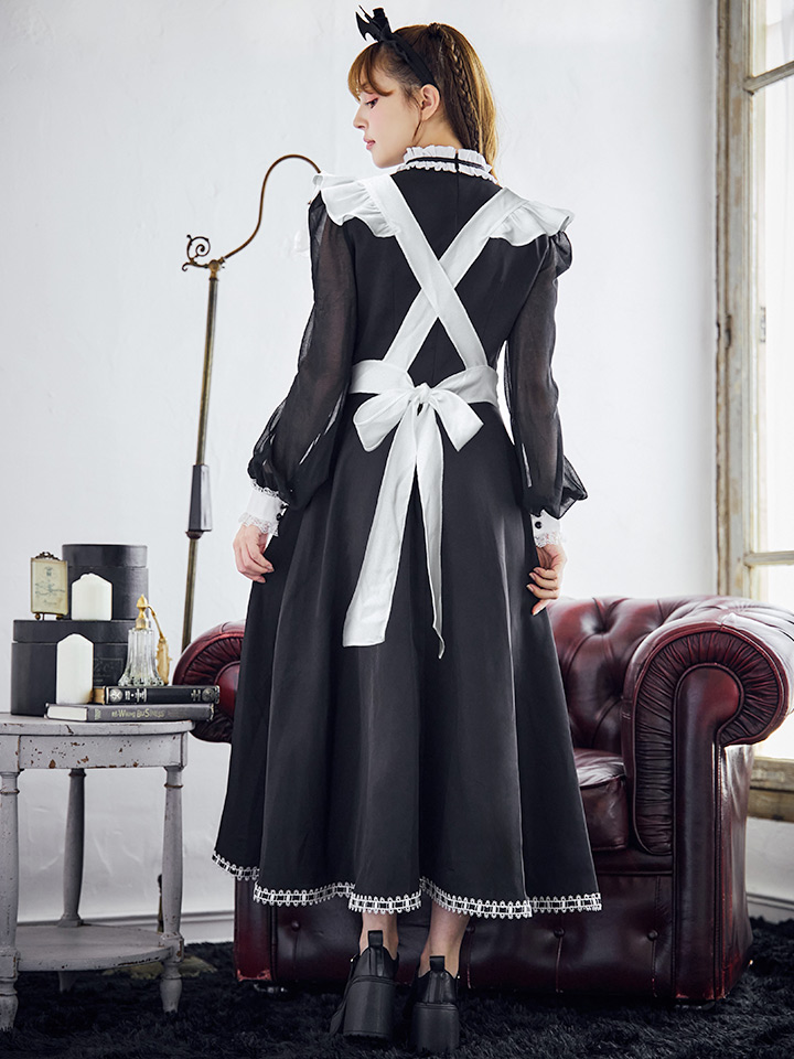 【SALE!!】【即日発送!】【ハロウィン】クラシックメイドロングワンピース 【コスプレ3点セット】【S-XLサイズ/1カラー】[HC03]