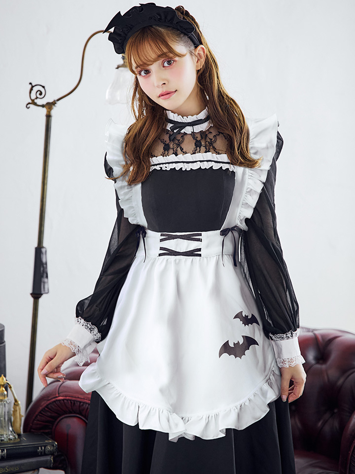 メイド めいど ワンピース かわいい 制服 コスプレ ミディアムスカート 長袖 ロングスリーブ 仕事服 ミディアム丈 ミモレ丈 露出が少ない ロングスカート