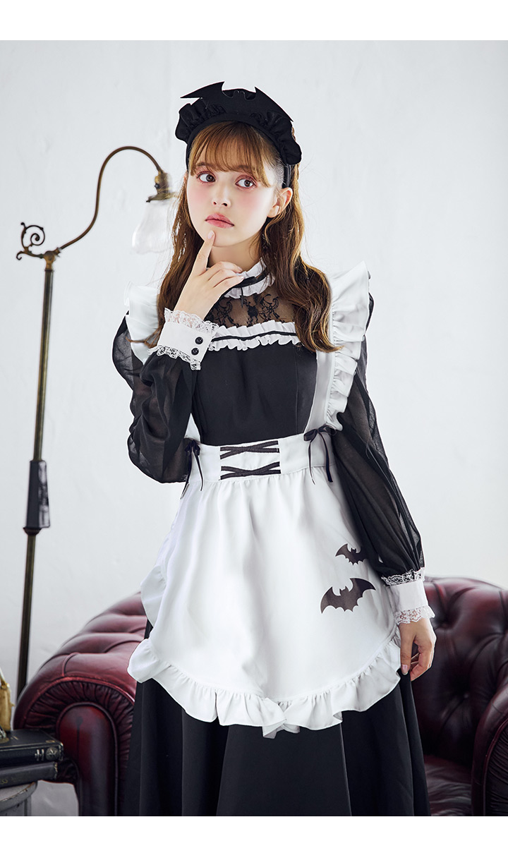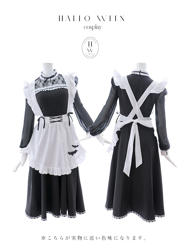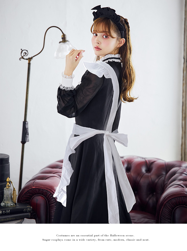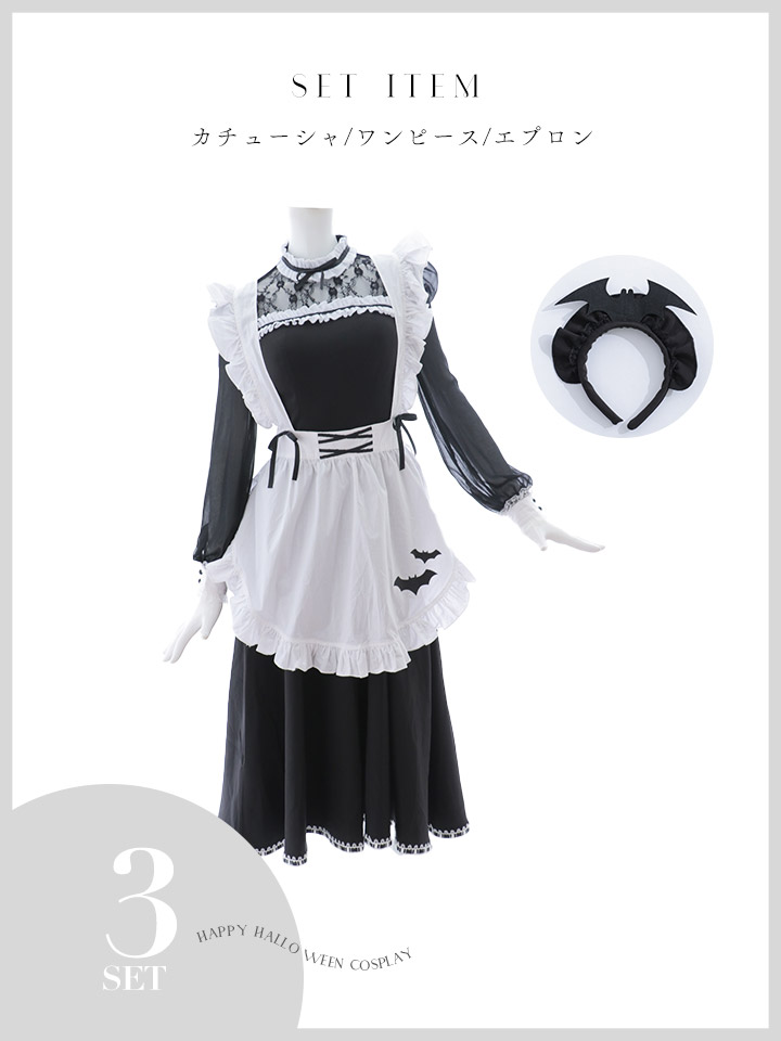 【SALE!!】【即日発送!】【ハロウィン】クラシックメイドロングワンピース 【コスプレ3点セット】【S-XLサイズ/1カラー】[HC03] [HW-196-SB-dzw-24NN]