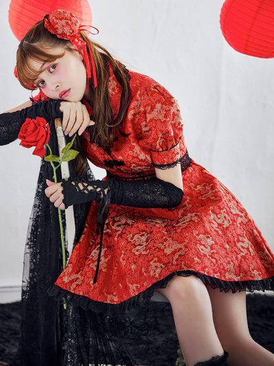 巫女 ねこ キャット ネコ 猫 ワンピース フレアスカート 長袖 ロングスリーブ レーススリーブ アニマル 動物 コスプレ 一般 露出が少ない