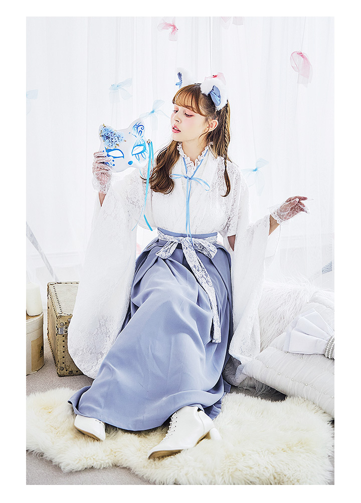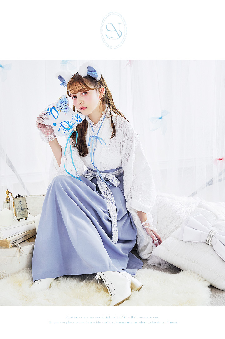 【即日発送!】【ハロウィン】猫巫女レース袴 【コスプレ5点セット】 【FREEサイズ/2カラー】[[HC03]-OMN]