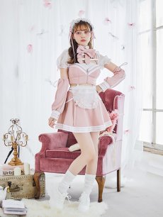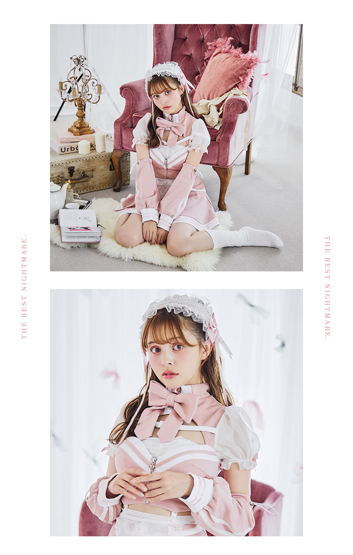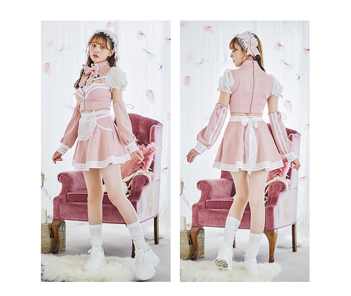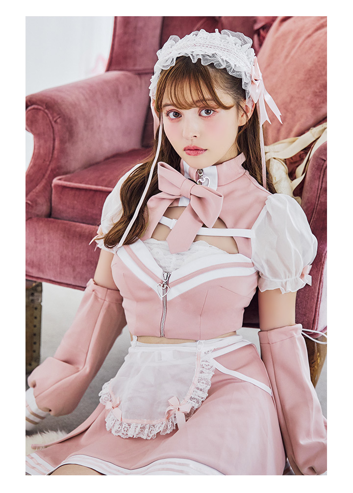 メイド リボン 甘い あざと コンカフェ スイート あまい フレア ミニ セットアップ セクシー コスプレ