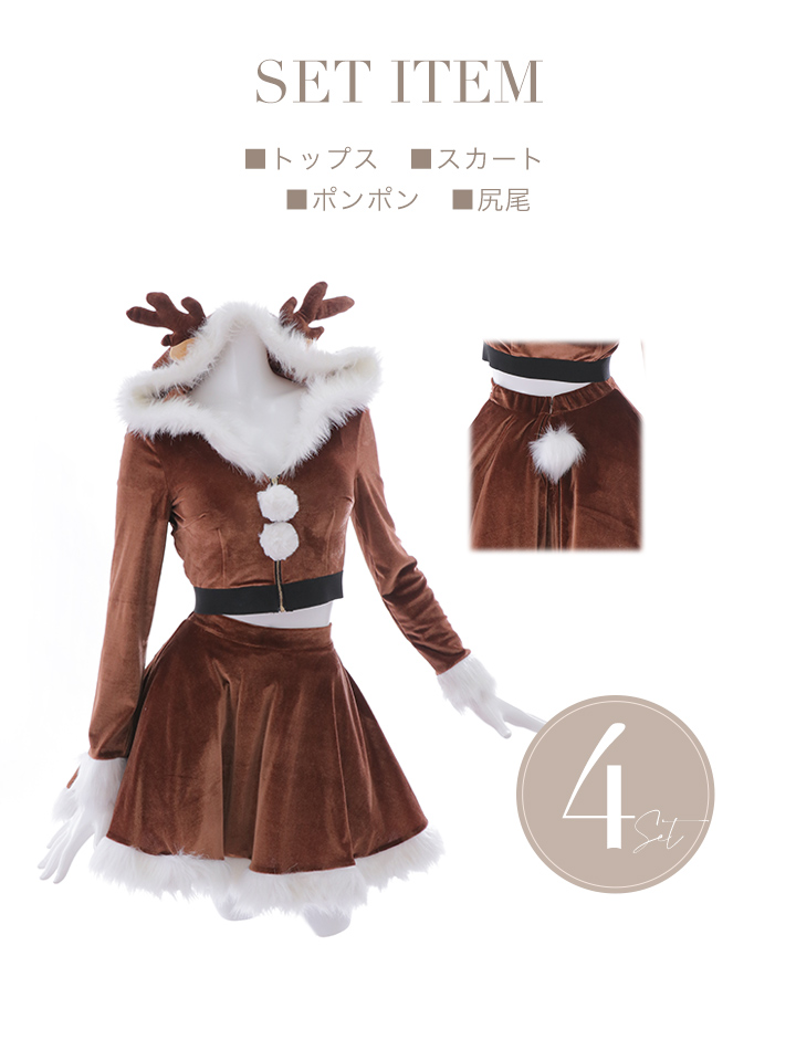 【即日発送】フード/ トナカイ/ セットアップ/ フレアサンタ【sugar nine サンタコス 4点セット】【S-Lサイズ/1カラー】[OF04]