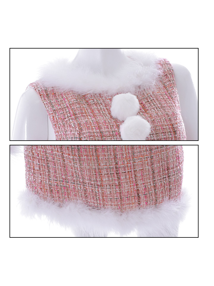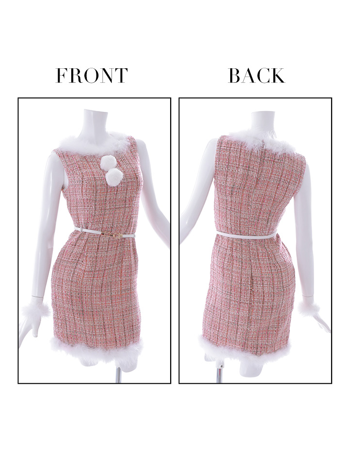 帽子/ワンピース/白ベルト/ファーブレス/ポンポンカラー