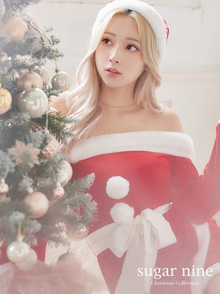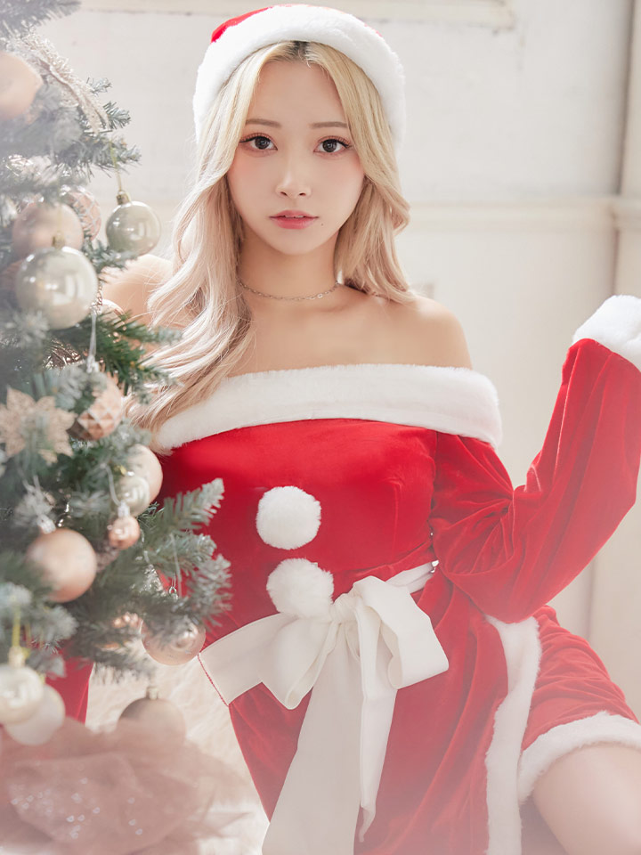 SALE!【即日発送!】【サンタコス 4点セット】オフショルダーロングスリーブサンタコスプレ[OF01] [8044SB-22PY]