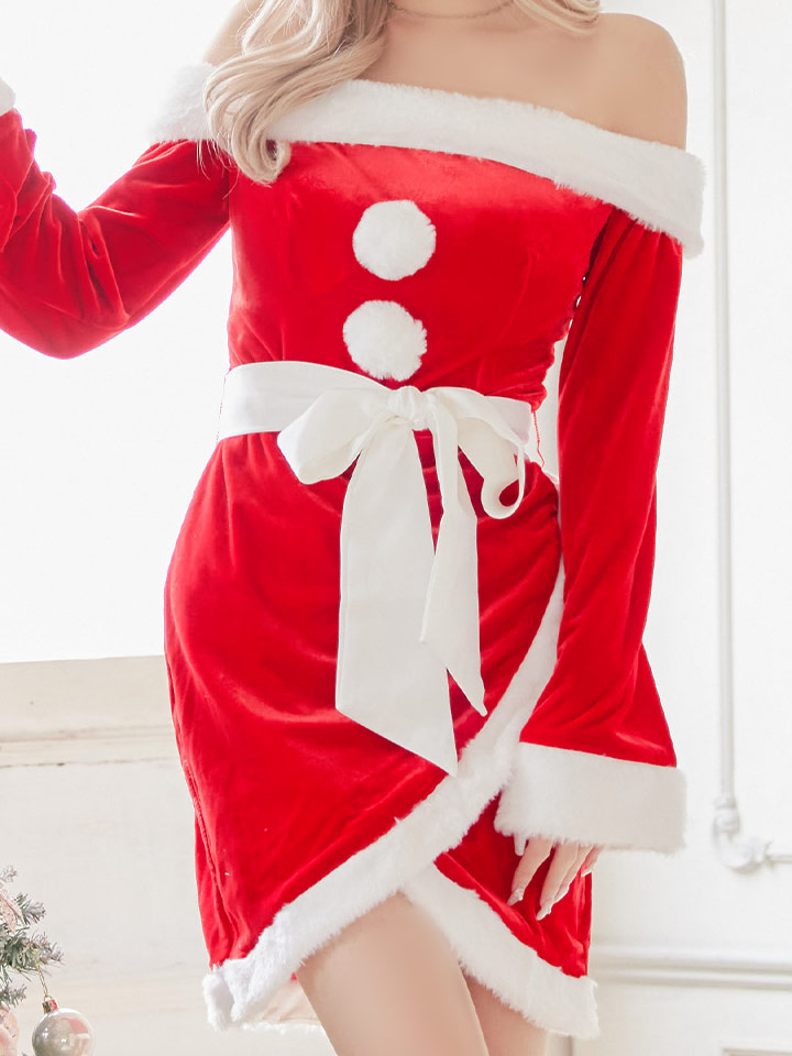 SALE!【即日発送!】【サンタコス 4点セット】オフショルダーロングスリーブサンタコスプレ[OF01]