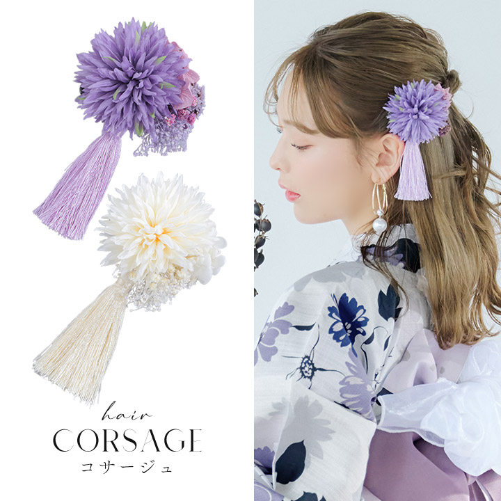 【浴衣小物】タッセル付きフラワーコサージュ【2カラー】[HC02] [YA-80-kn]