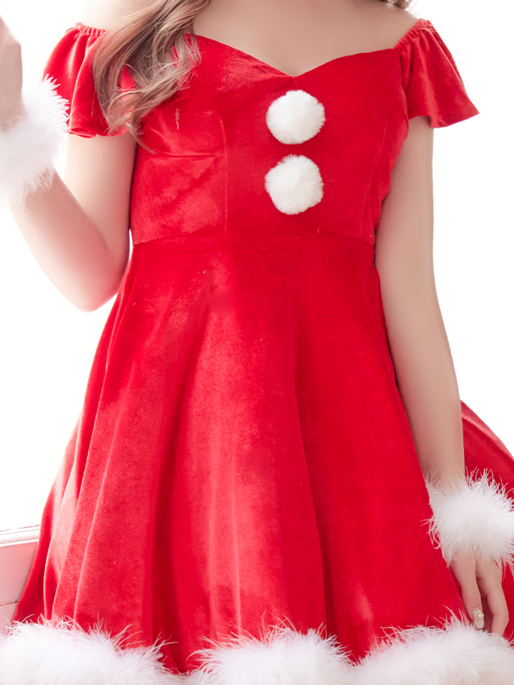 - > 【即日発送】【sugar nine サンタコス 5点セット】【S-XLサイズ/3カラー】ポンチョ付きフレアサンタコスプレ[OF04]