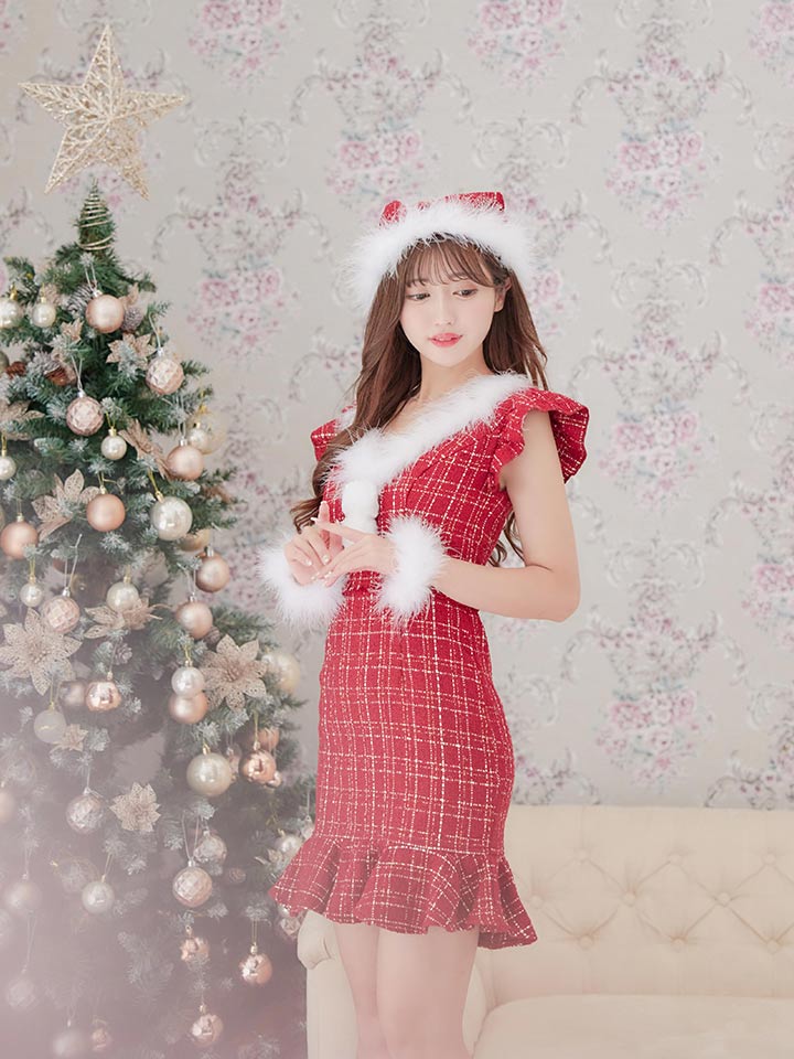 【即日発送】ツイードマーメイドドレスサンタ【sugar nine サンタコス 4点セット】【S-XLサイズ/2カラー】[OF01]