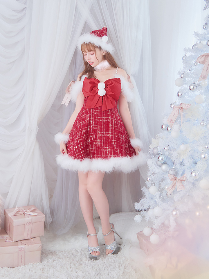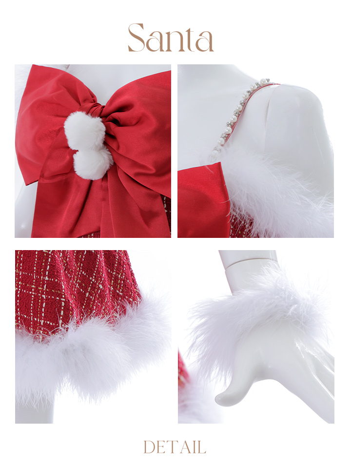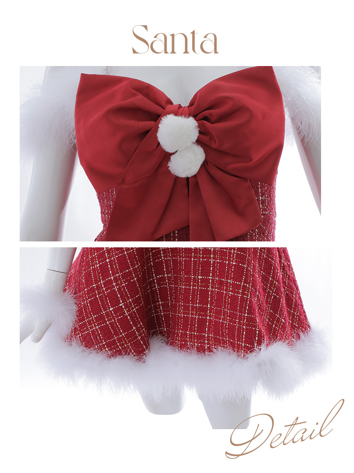 【即日発送!】【サンタコス 5点セット】【S-XLサイズ/1カラー】リボンキャミソールフレアツイードサンタコスプレ[OF04] [SS098YNdzj-23NN-1]