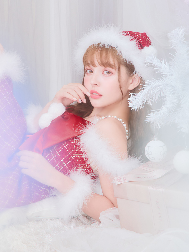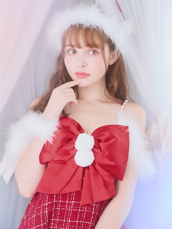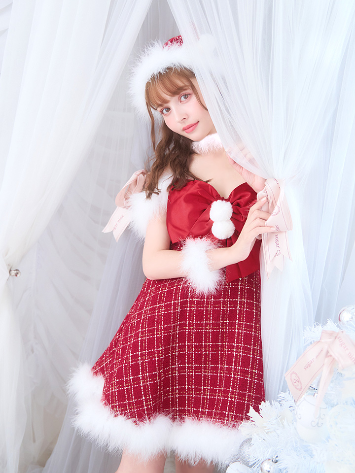 【即日発送!】【サンタコス 5点セット】【S-XLサイズ/1カラー】リボンキャミソールフレアツイードサンタコスプレ[OF04]
