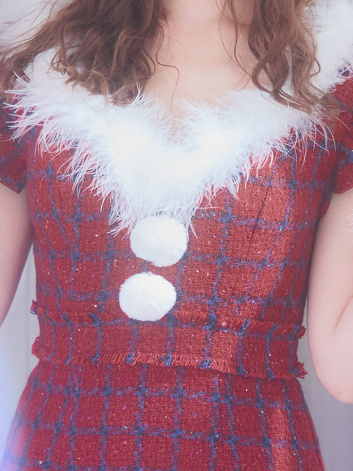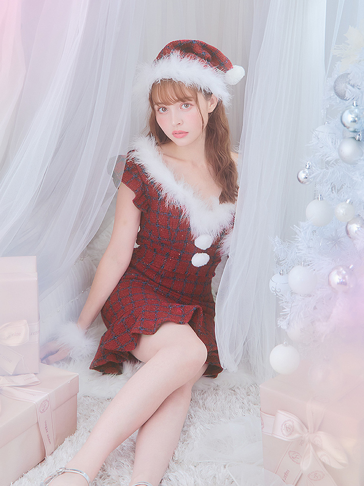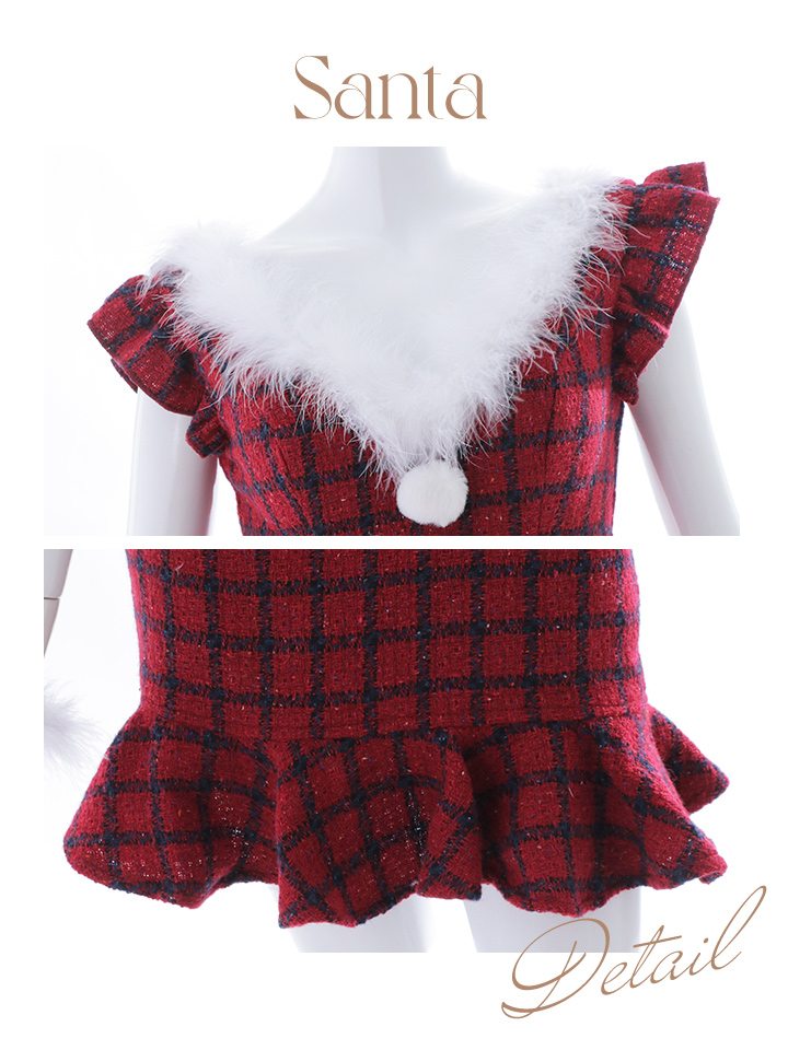 SALE!【サンタコス 5点セット】【S-XLサイズ/1カラー】マーメイドチェックサンタコスプレ[OF01]