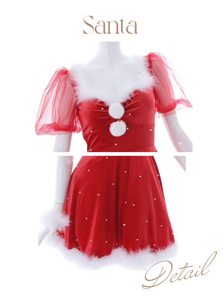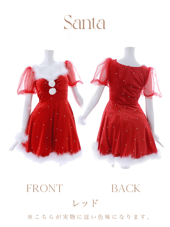 SALE!【即日発送】【サンタコス 4点セット】【S-Lサイズ/1カラー】ベロアパールフレアスカートサンタコスプレ[OF04] [SS110YNdzj-23NN-1]