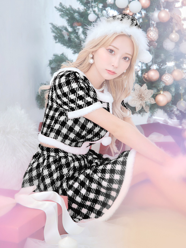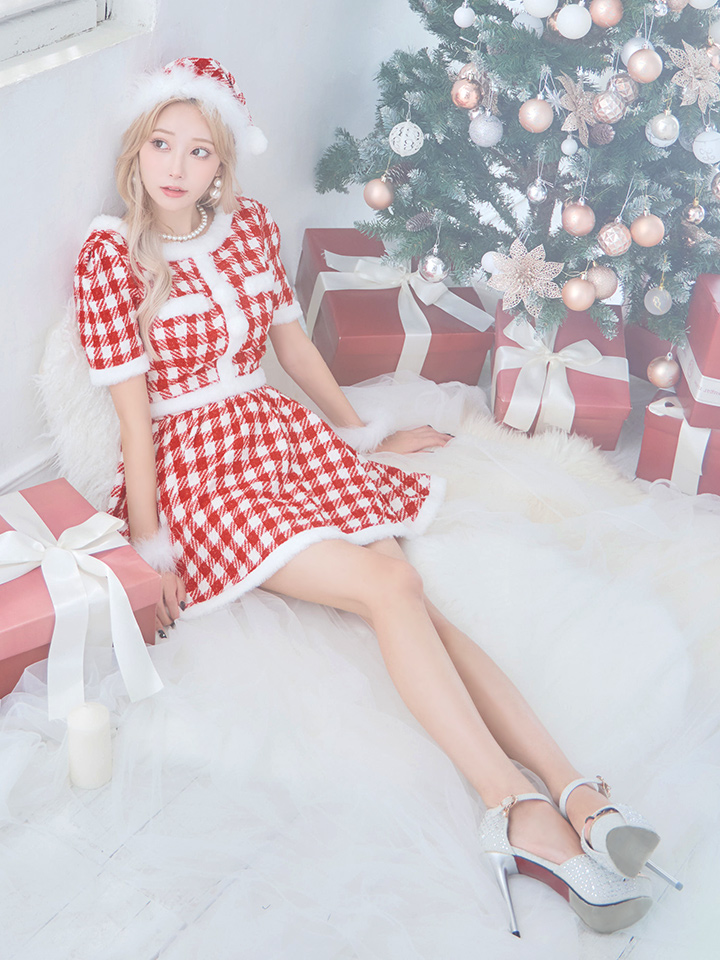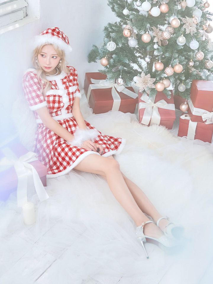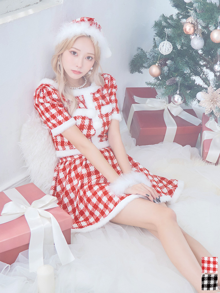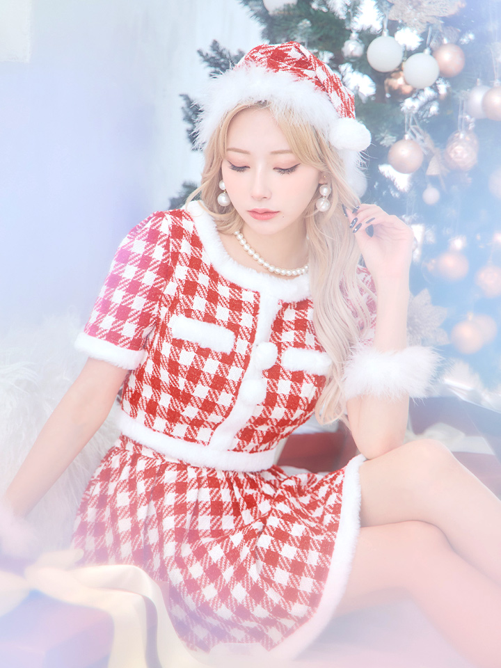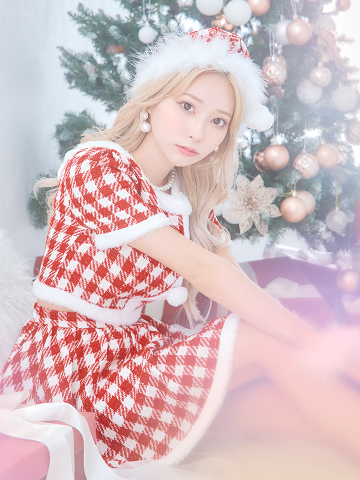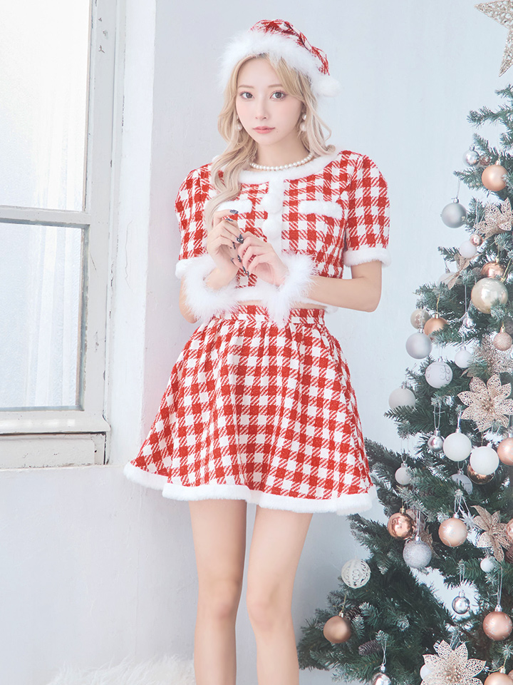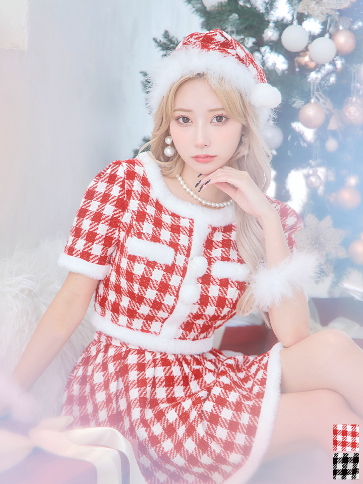 【一部予約商品/12月中旬発送予定】【サンタコス 5点セット】【XS-Lサイズ/2カラー】ギンガムチェック セットアップフレアサンタコスプレ[OF01]