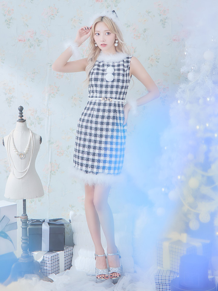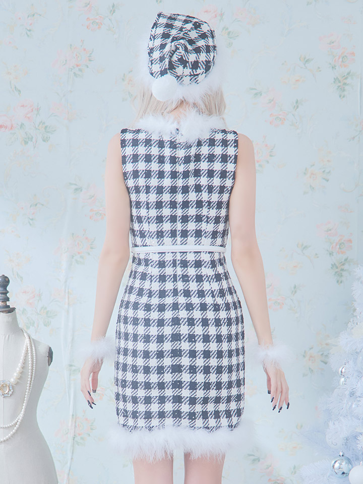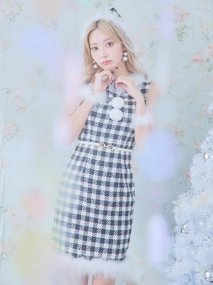 【サンタコス 5点セット】【XS-XLサイズ/2カラー】ギンガムチェック タイトワンピースサンタコスプレ[OF01] [SS8029SB-23PY-1]