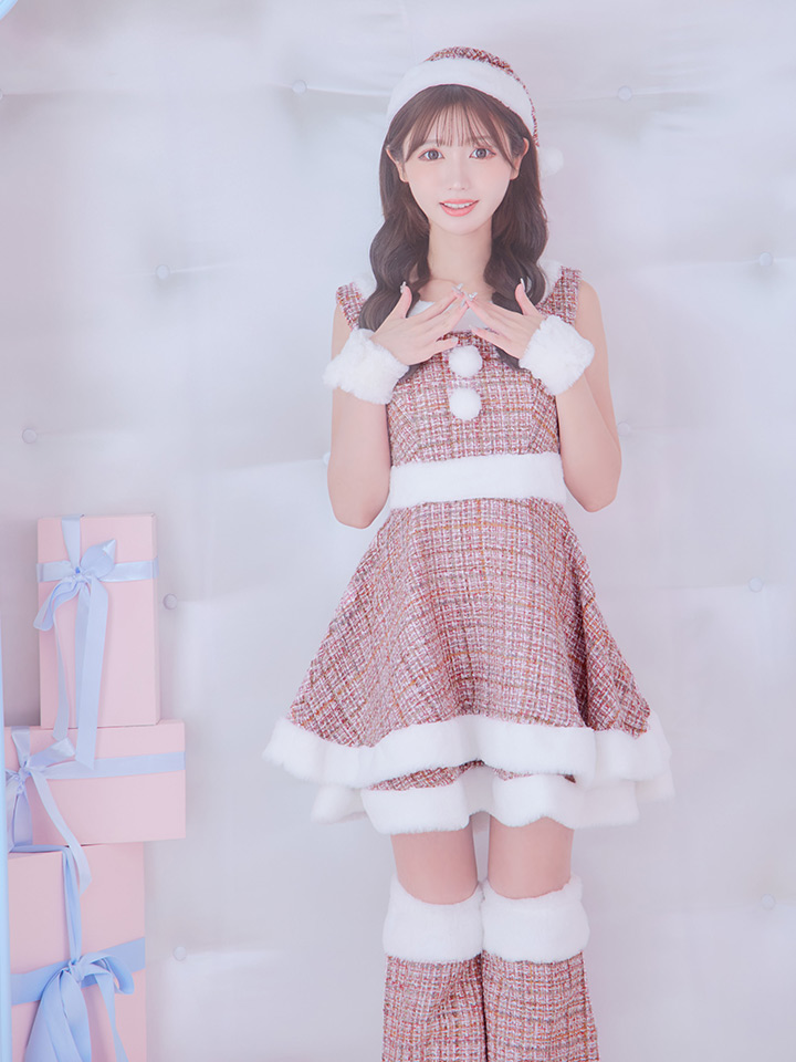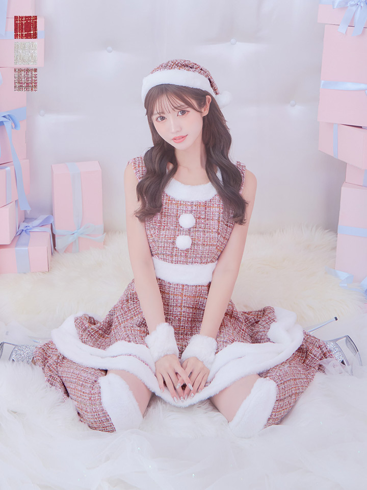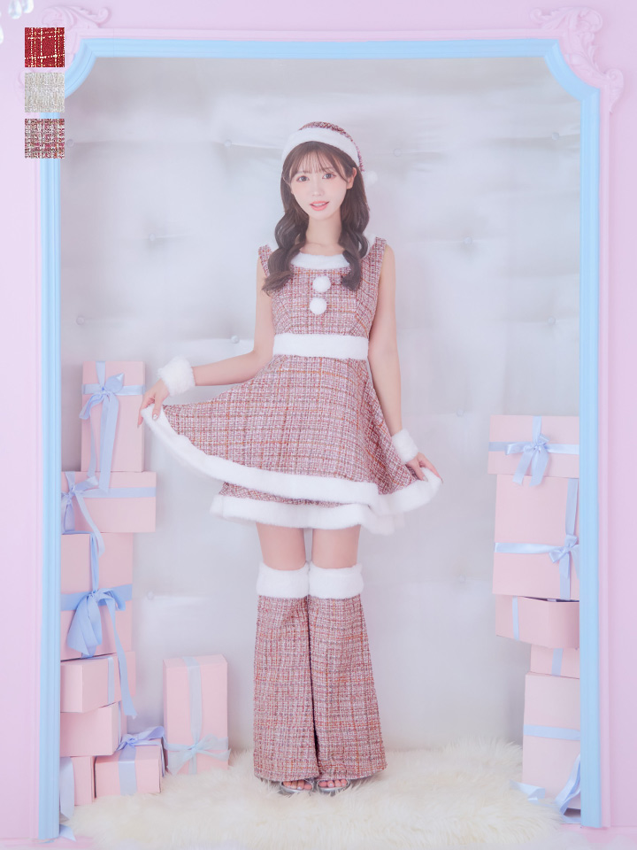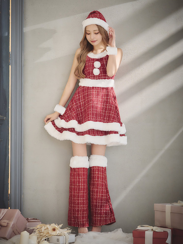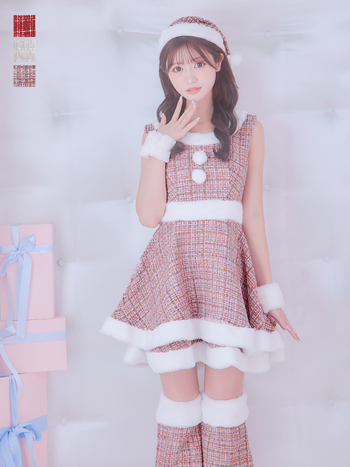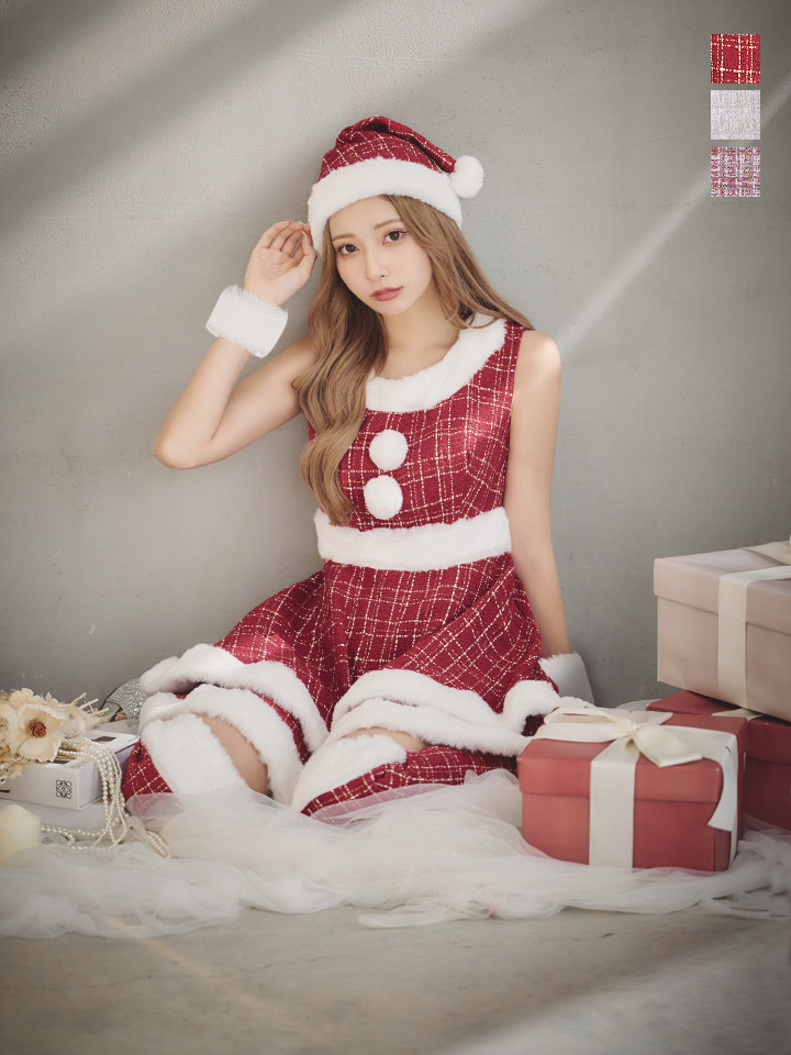 - > 即日発送!【サンタコス 5点セット】【S-Lサイズ/3カラー】ツイードチェック2段フレアスカートサンタコスプレ[OF01]