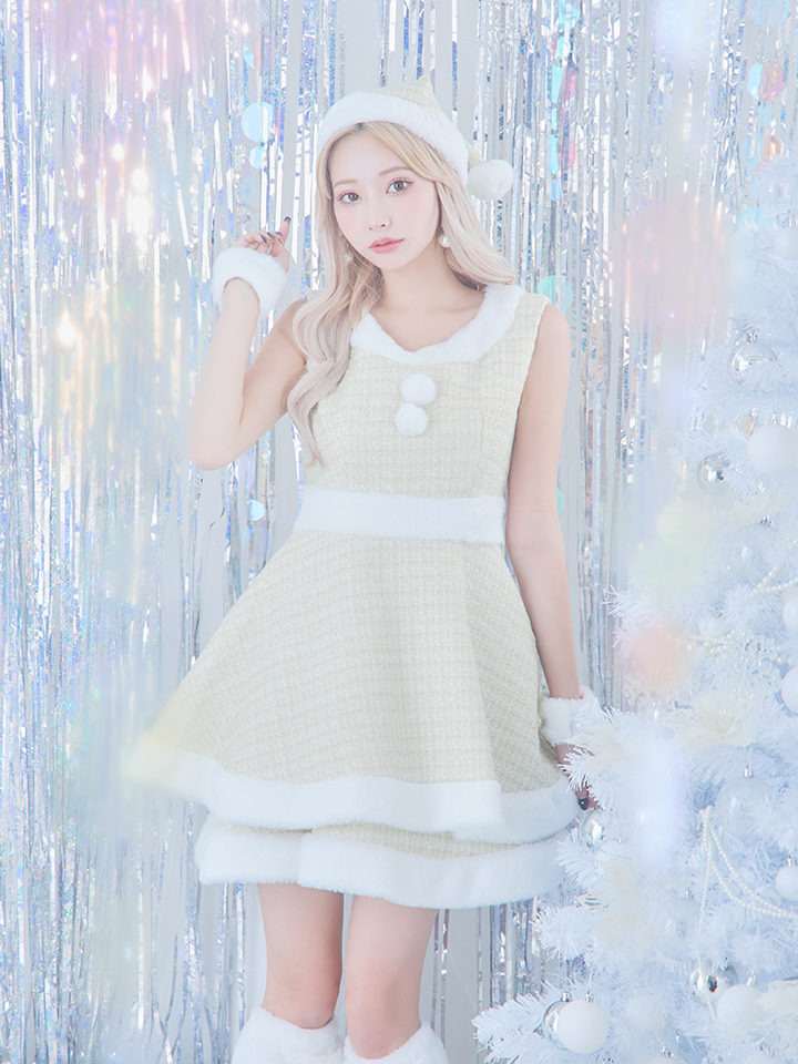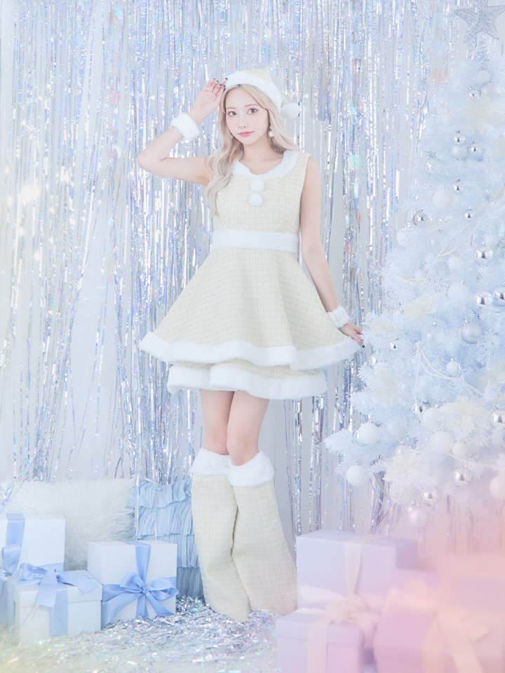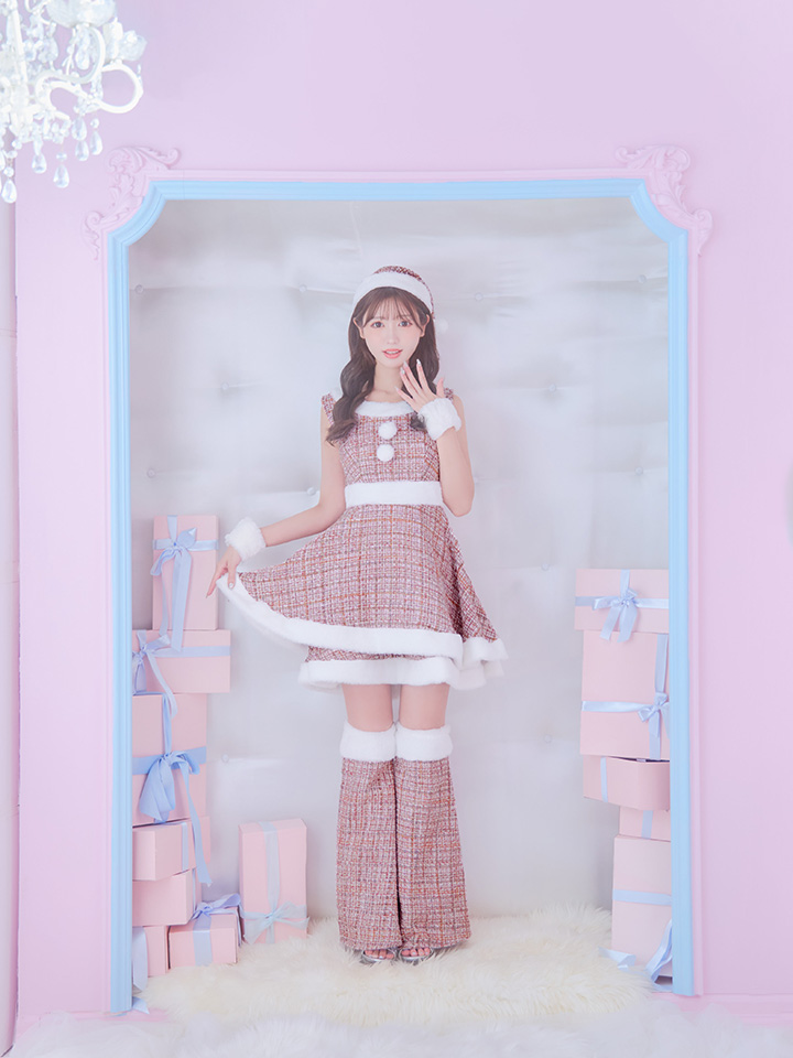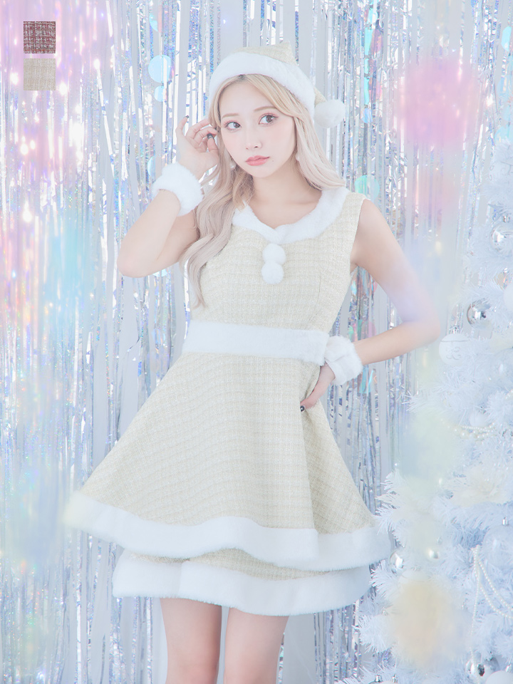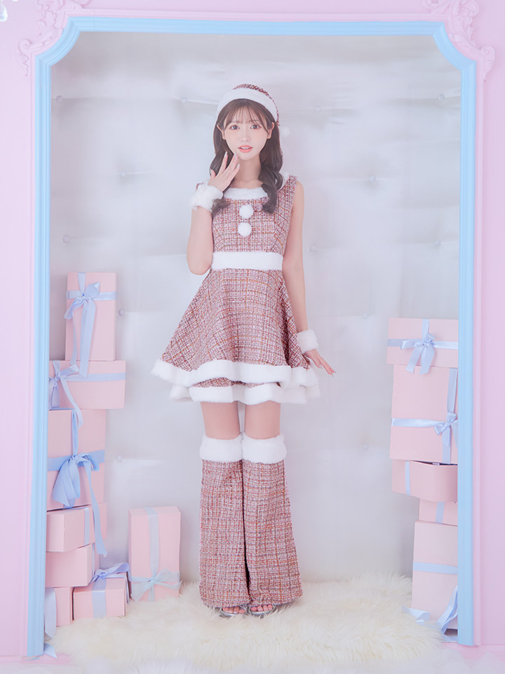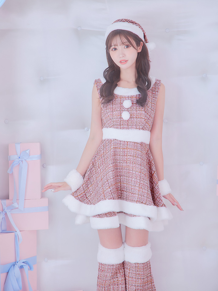 - > 即日発送!【サンタコス 5点セット】【S-Lサイズ/3カラー】ツイードチェック2段フレアスカートサンタコスプレ[OF01]