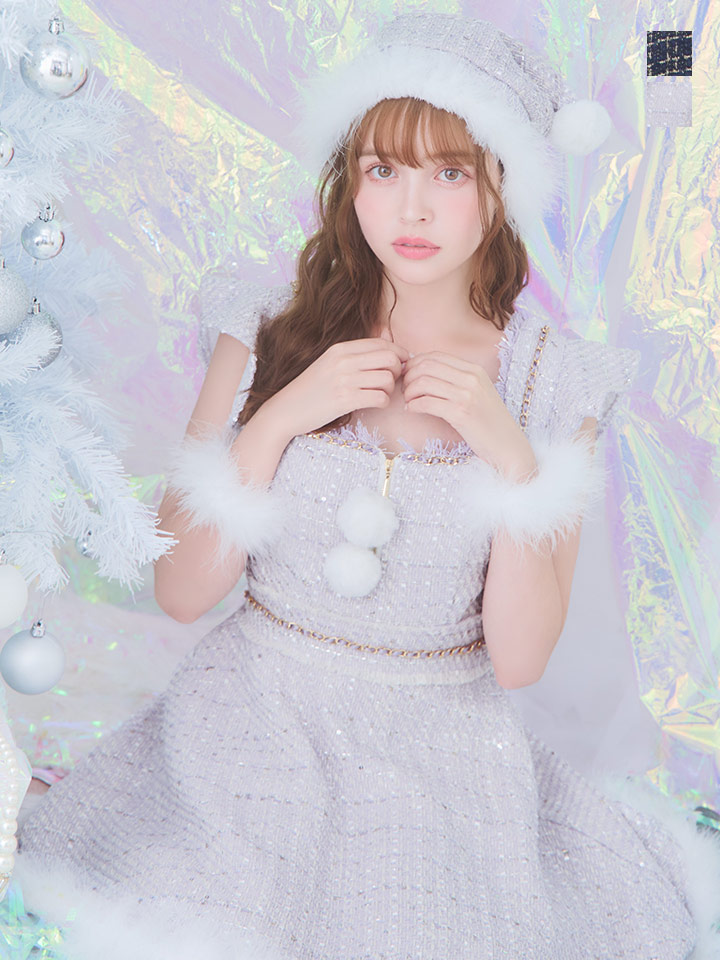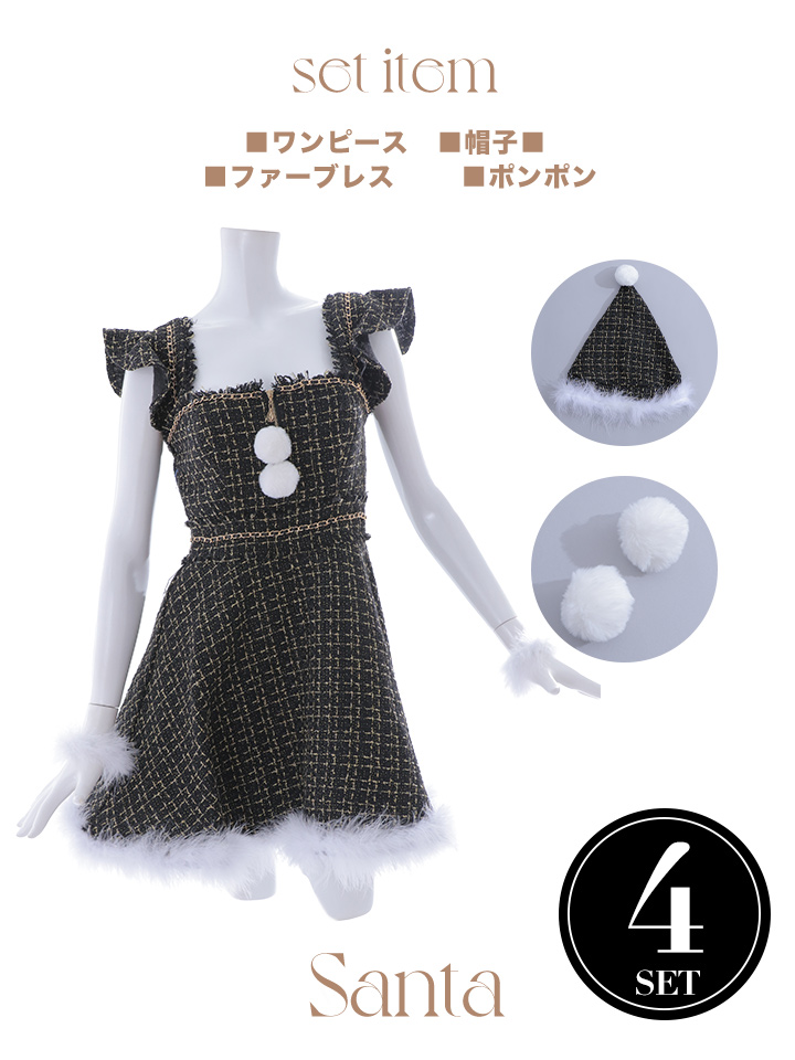 - > SALE!【即日発送!】【サンタコス 4点セット】【S-Lサイズ/2カラー】チェーンモチーフフロントジップツイードフレアサンタコスプレ[OF01]