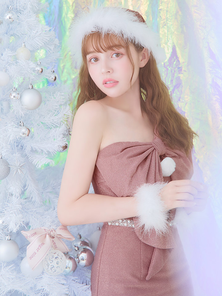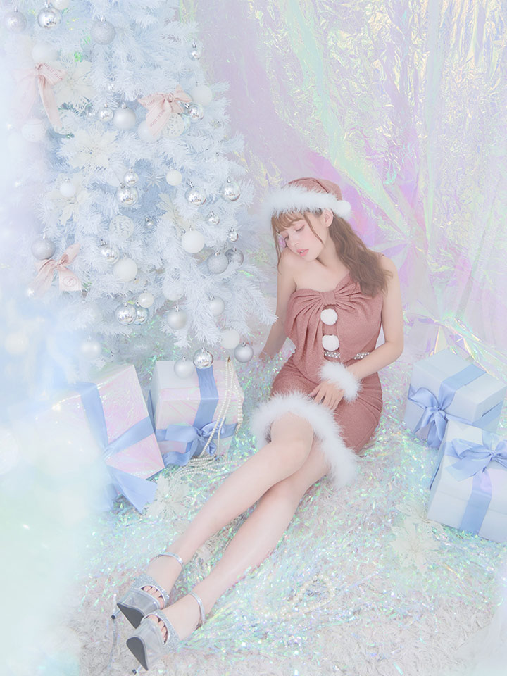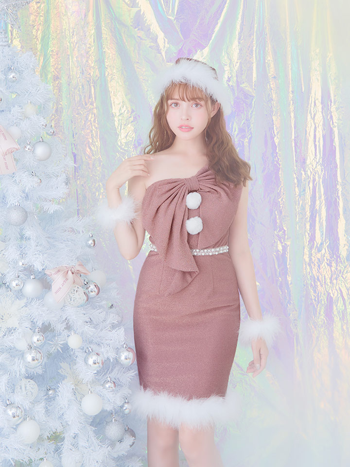 【即日発送】【サンタコス4点セット】【S-Lサイズ/1カラー】ワンショルダーリボンサンタコスプレ[OF04]