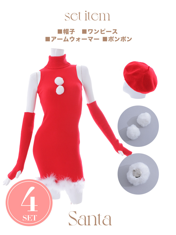 【即日発送!】【サンタコス 4点セット】【S-Lサイズ/1カラー】ワンピースドレスサンタ[OF01] [SS8045SBdzj-23AY-1]