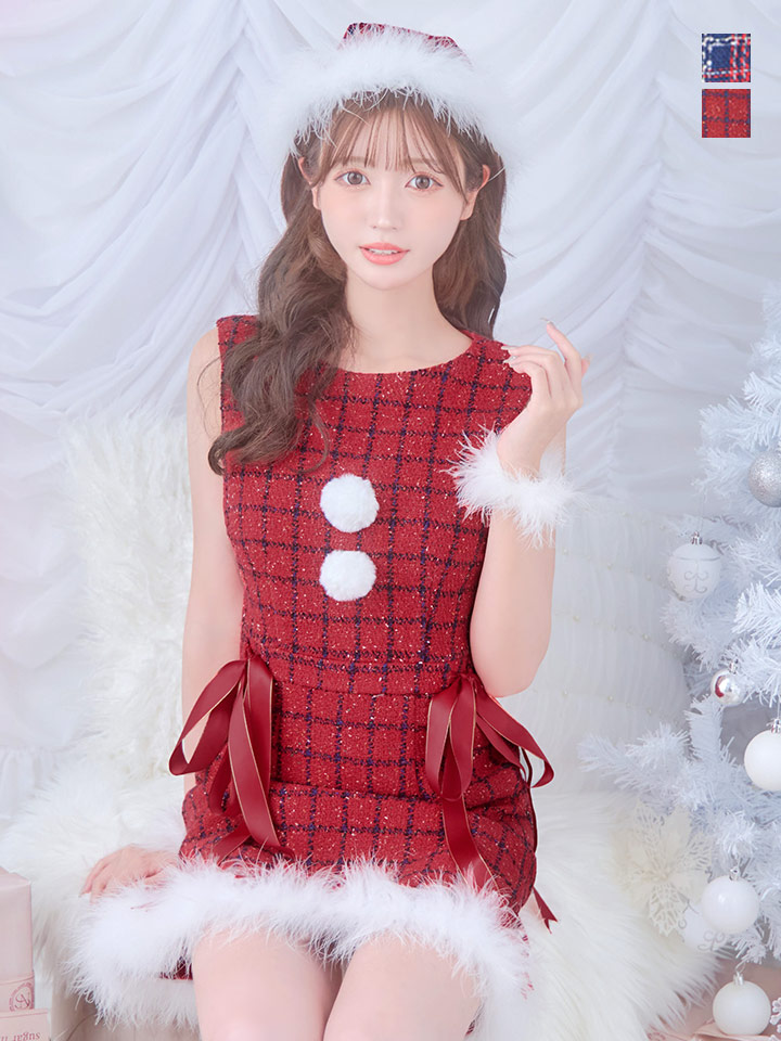 - > SALE!即日発送!【サンタコス 4点セット】【S-Lサイズ/2カラー】サイドリボンツイードサンタコスプレ[OF04]