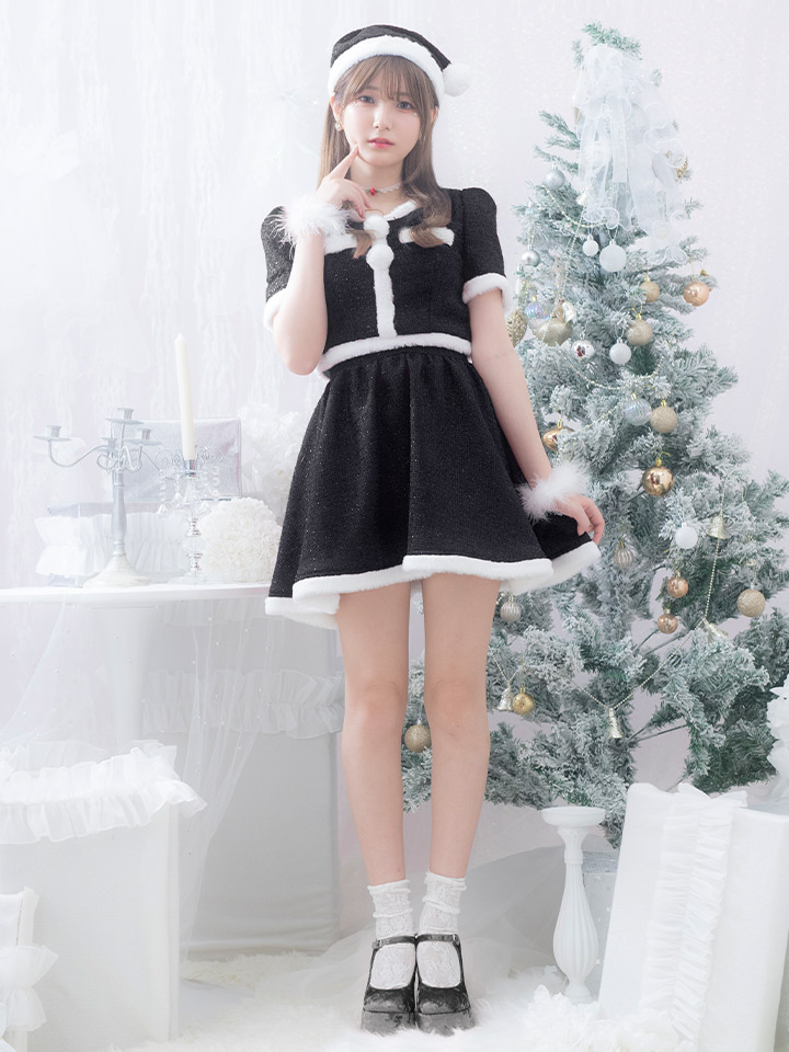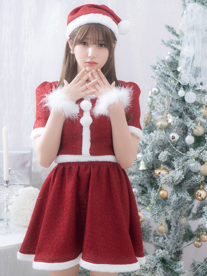 - > 【即日発送】【サンタコス 5点セット】【XS-Lサイズ/2カラー】ラメツイードセットアップサンタ[OF01]