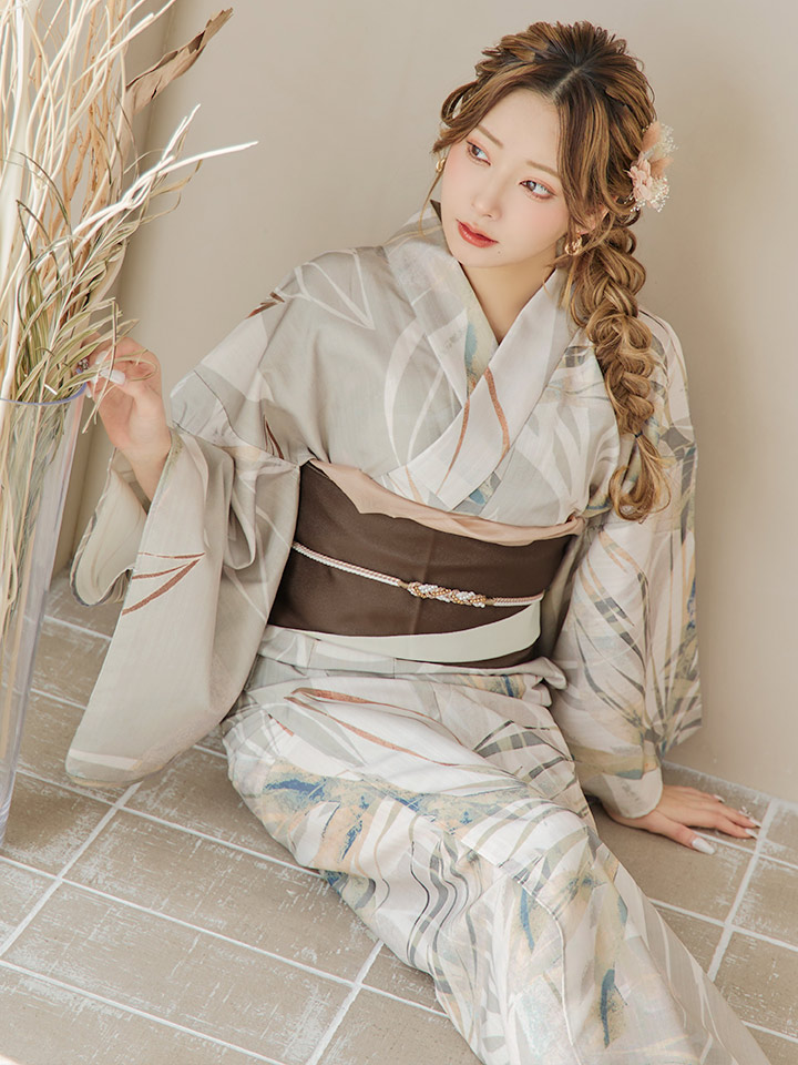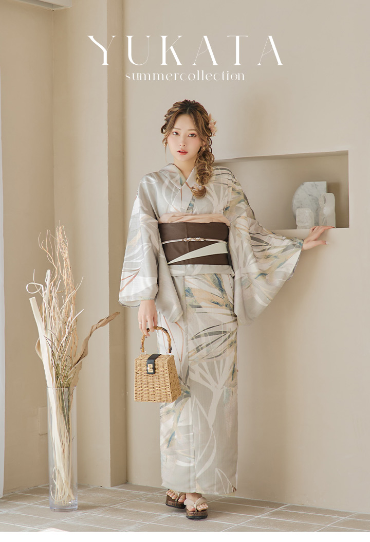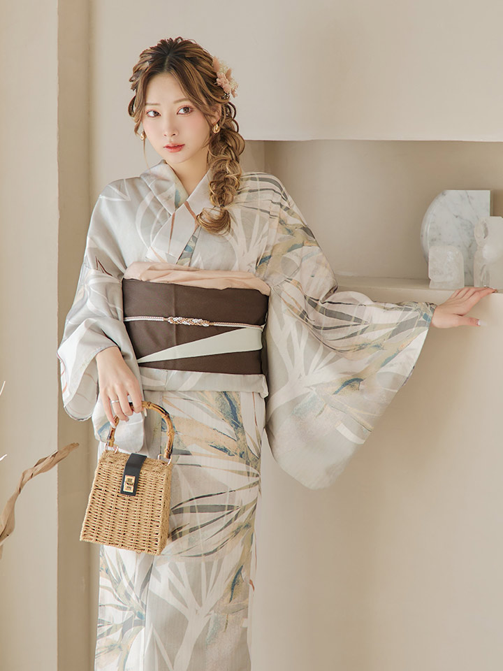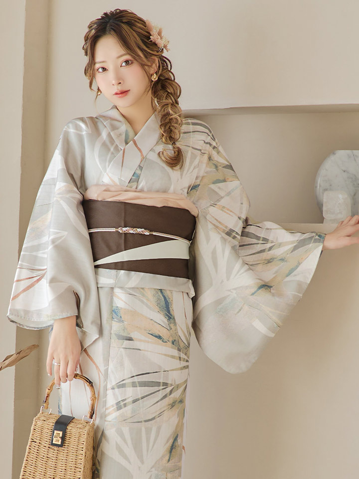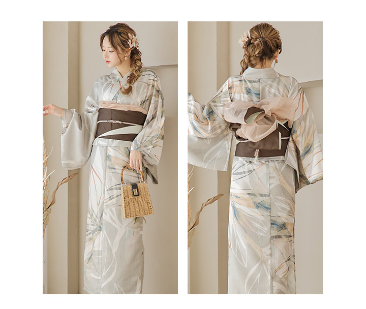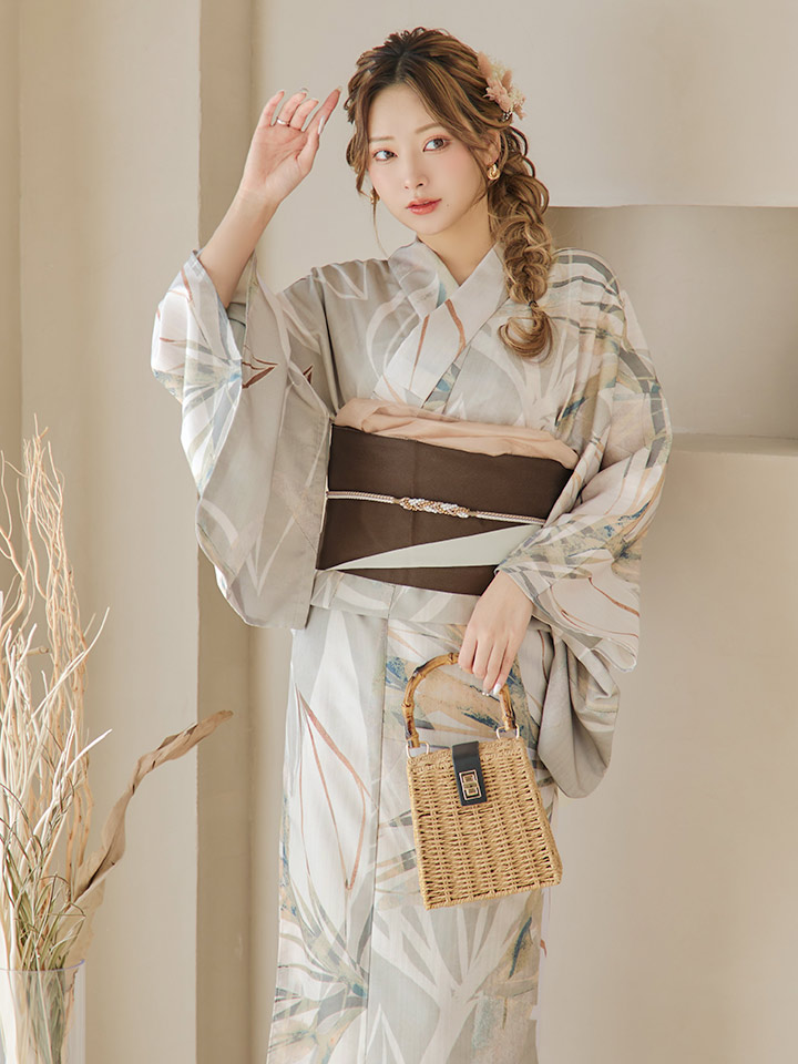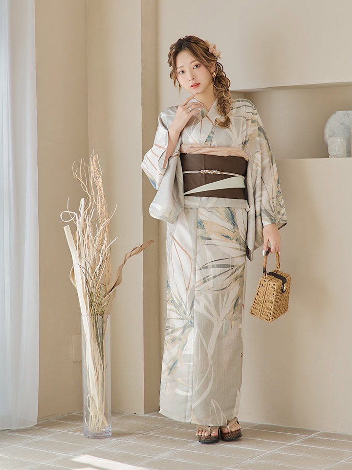 【即日発送】【浴衣セール!】ヘルシーリーフ柄ベージュ浴衣 【浴衣3点セット 浴衣/帯/下駄】 [YMT] [OY8032nz-24PY-dzh]