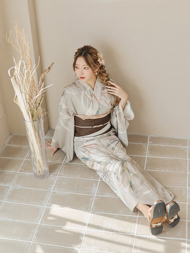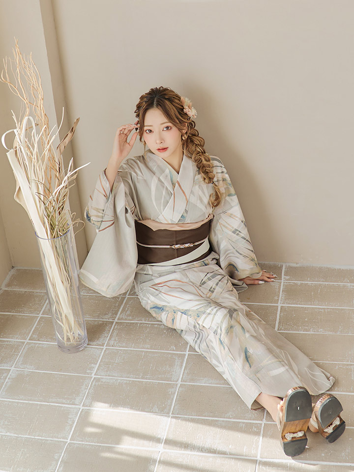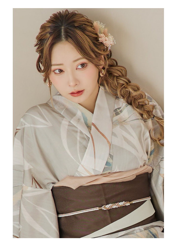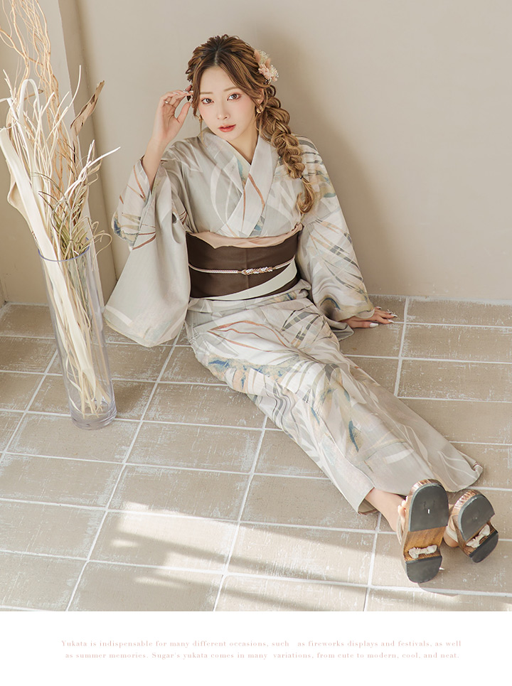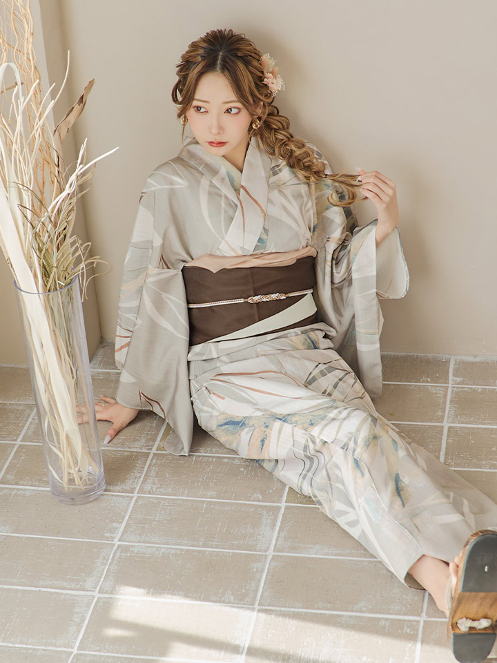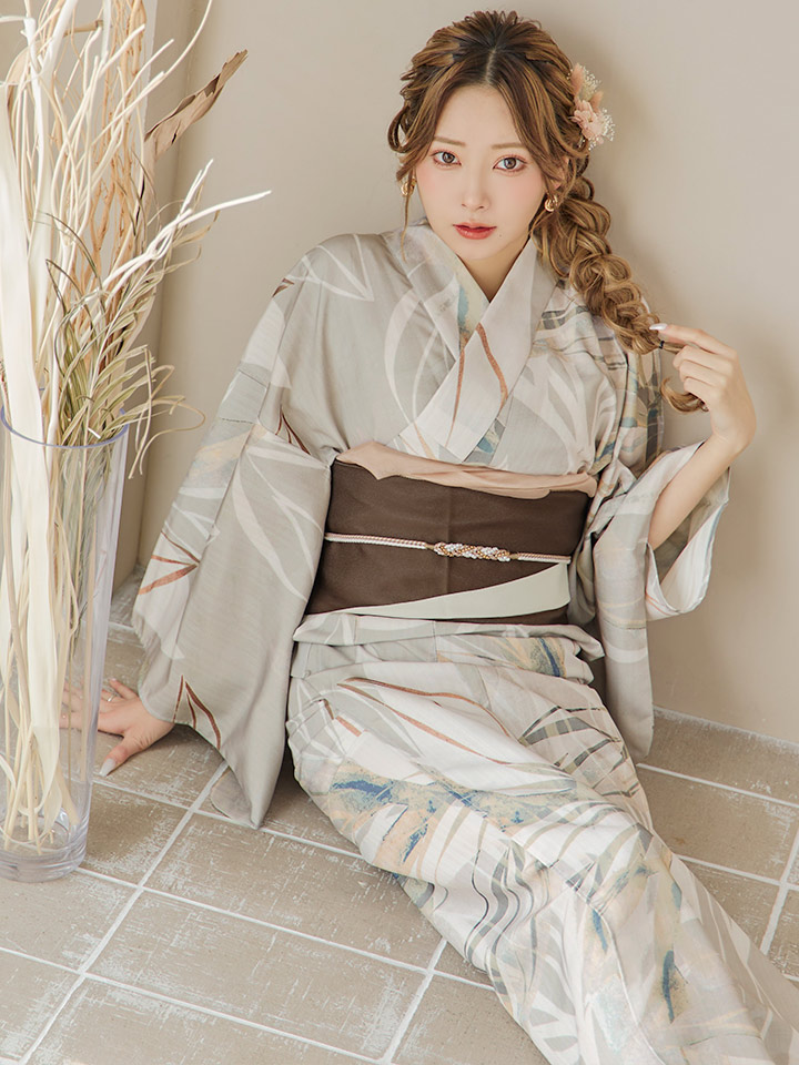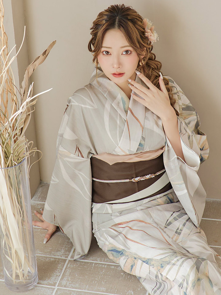 【即日発送】【浴衣セール!】ヘルシーリーフ柄ベージュ浴衣 【浴衣3点セット 浴衣/帯/下駄】 [YMT] [OY8032nz-24PY-dzh]