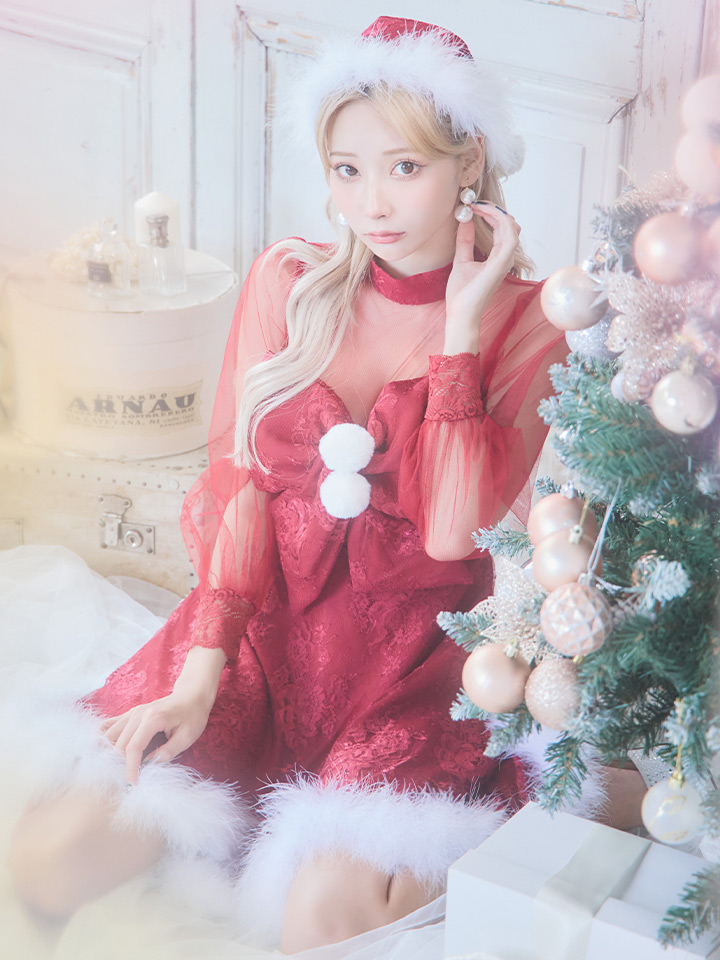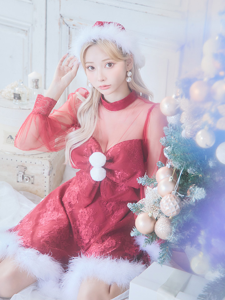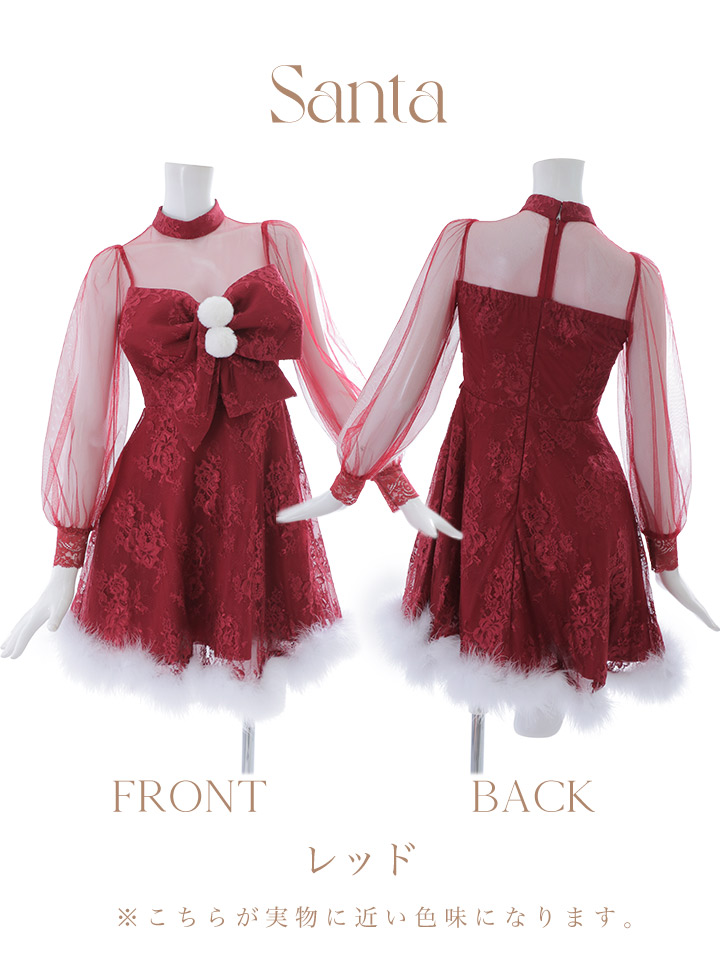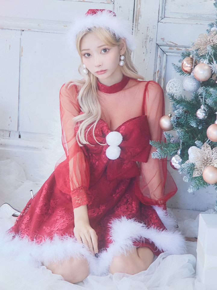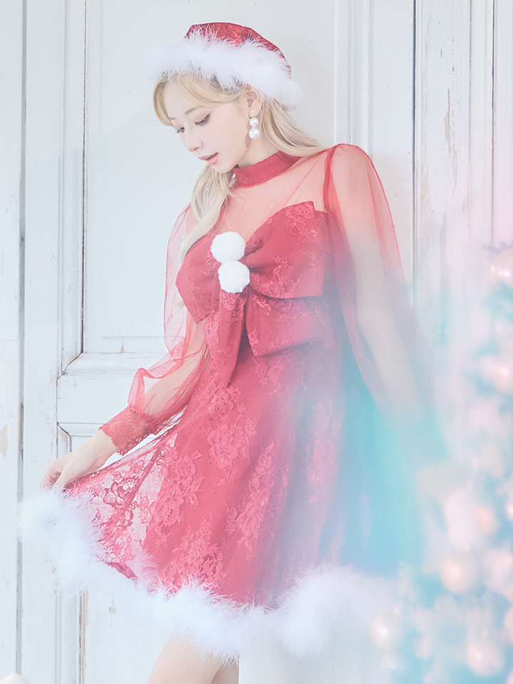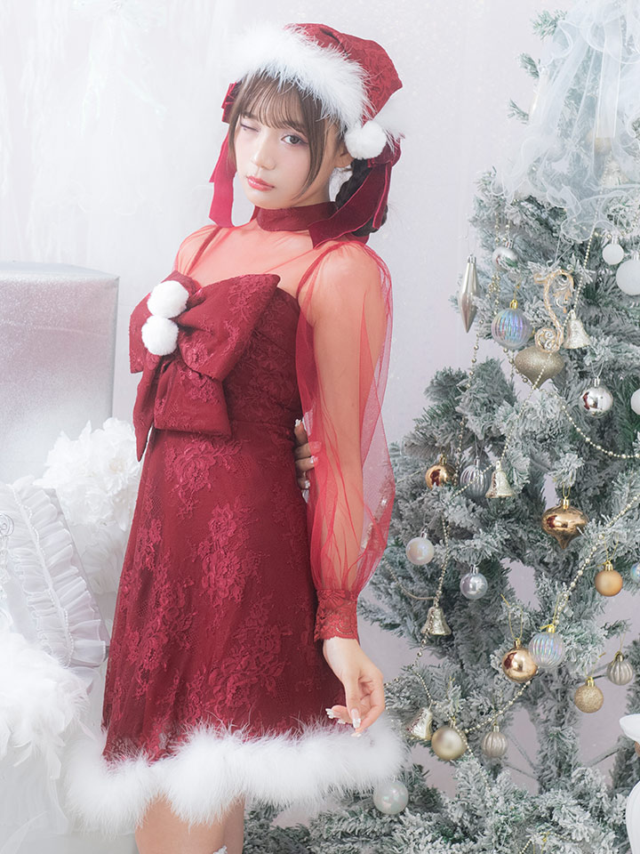 - > SALE!即日発送!【サンタコス 3点セット】【S-XLサイズ/1カラー】チュールスリーブレースリボンサンタコスプレ[OF04]