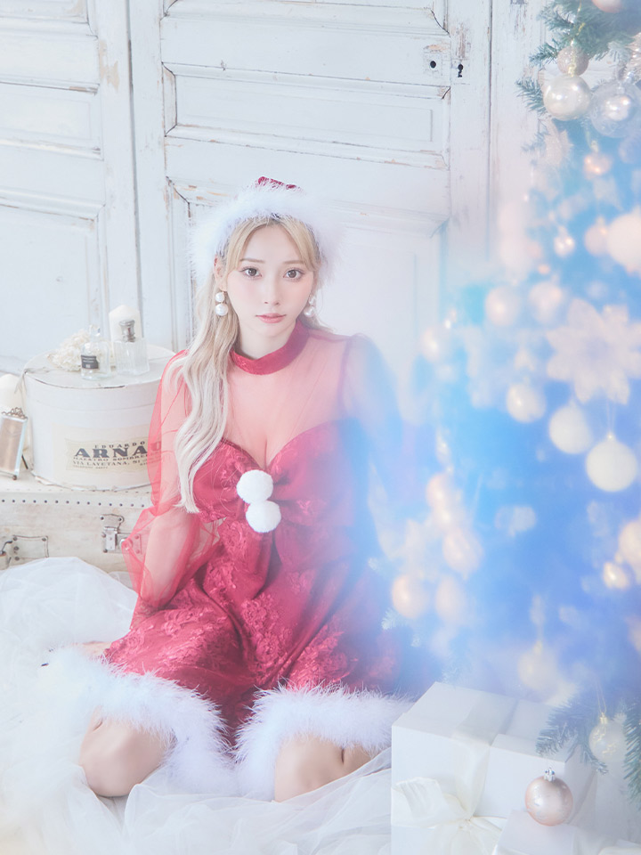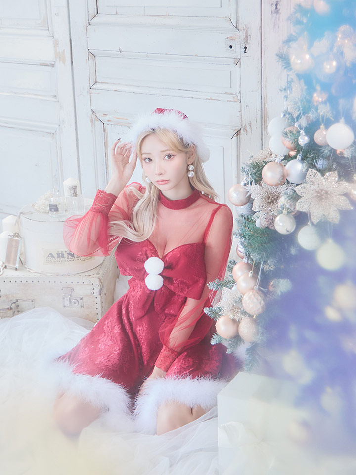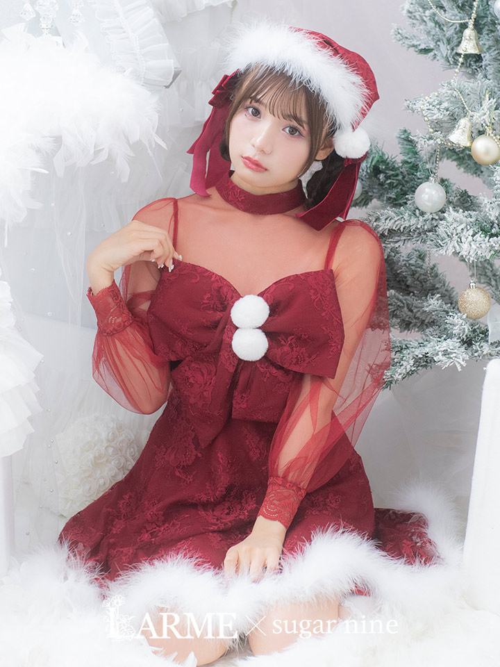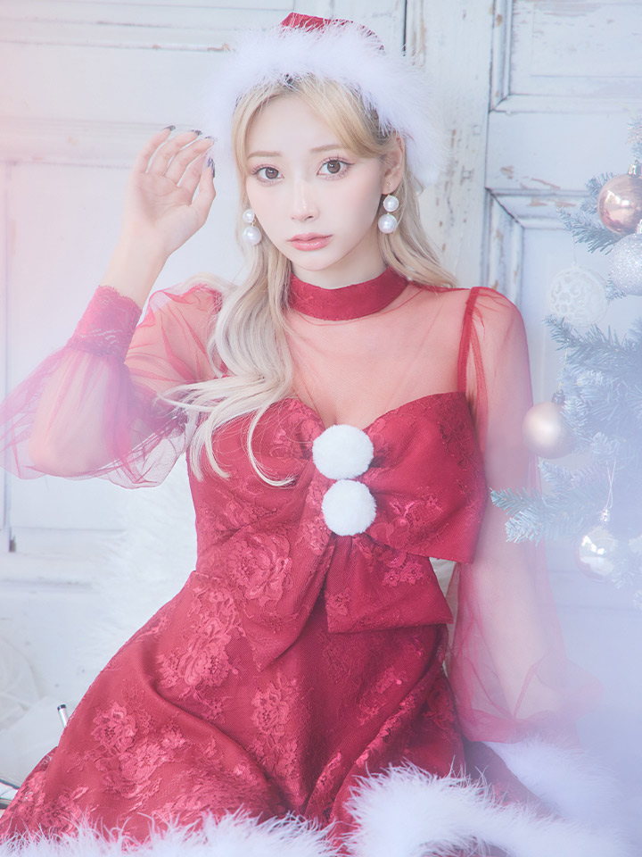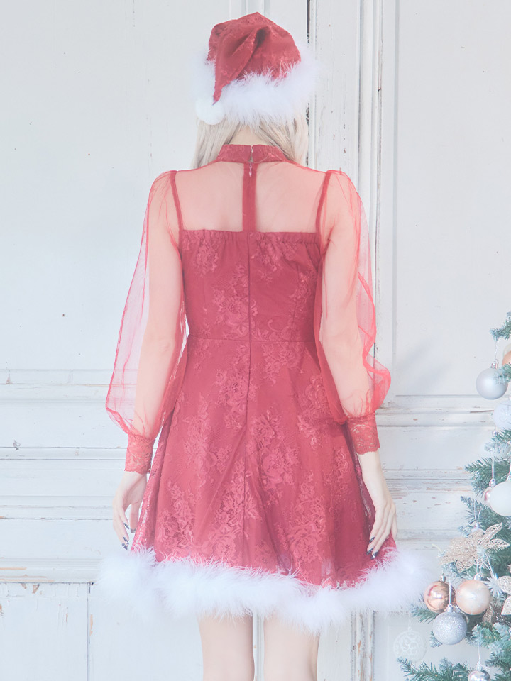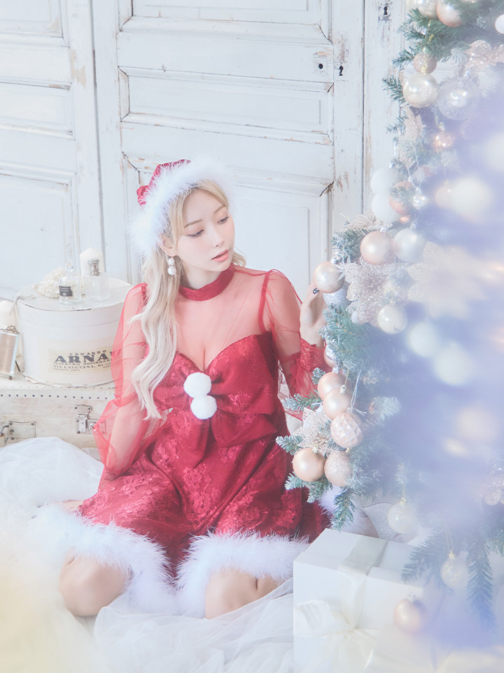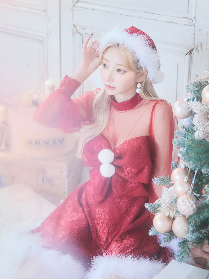 - > SALE!即日発送!【サンタコス 3点セット】【S-XLサイズ/1カラー】チュールスリーブレースリボンサンタコスプレ[OF04]