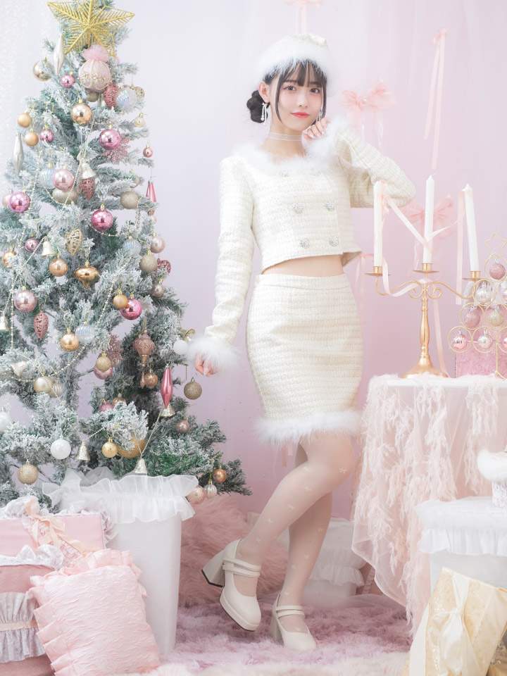 SALE!【即日発送】【サンタコス 3点セット】【XS-Lサイズ/2カラー】ロングスリーブツイードサンタコスプレ[OF01]