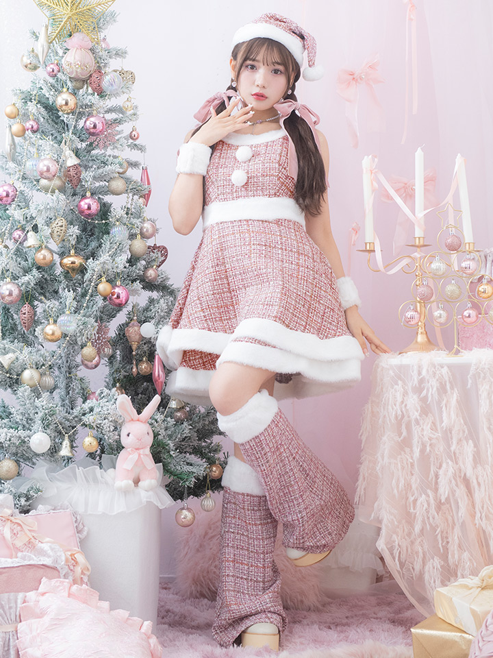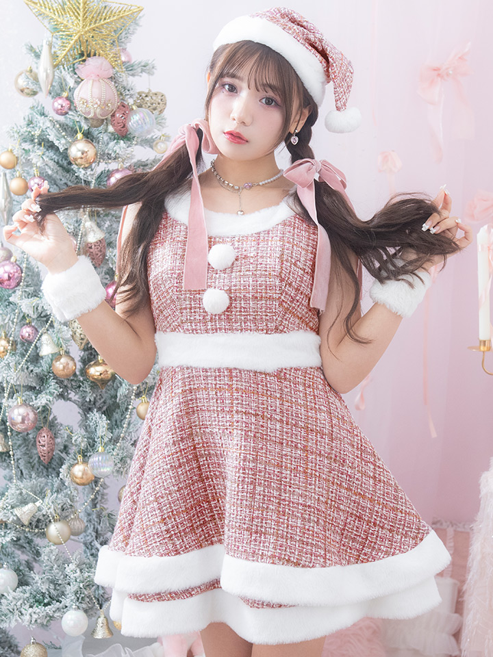 - > 即日発送!【サンタコス 5点セット】【S-Lサイズ/3カラー】ツイードチェック2段フレアスカートサンタコスプレ[OF01]