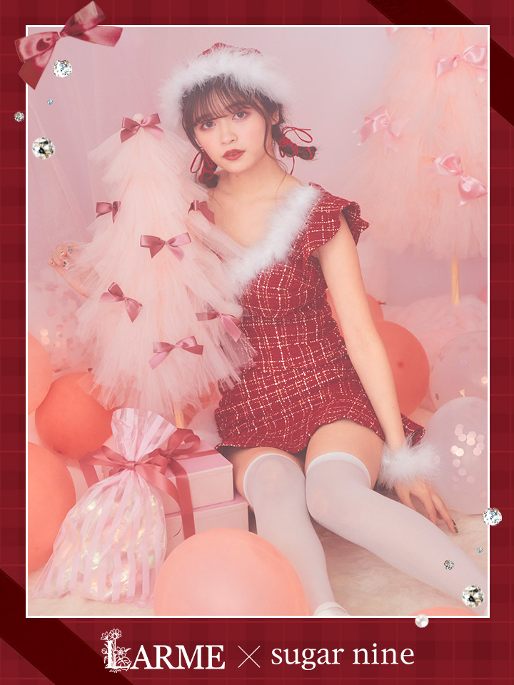 - > 【即日発送】ツイード/ セットアップ/ マーメイドフレアミニドレスサンタ【sugar nine サンタコス 5点セット】【XS-Mサイズ/5カラー】[OF04]