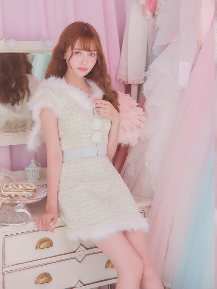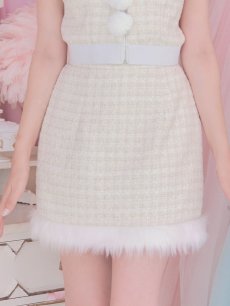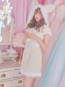 セットアップ フレアスカート 胸元隠し ツイード レッド ホワイト ミニ