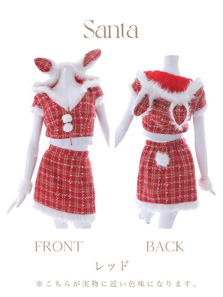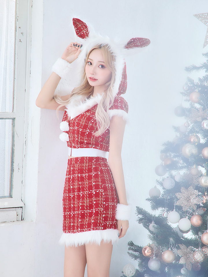 - > 【即日発送!】【サンタコス5点セット】【XS-XLサイズ/2カラー】ツイードチェックバニーサンタコスプレ[OF04]