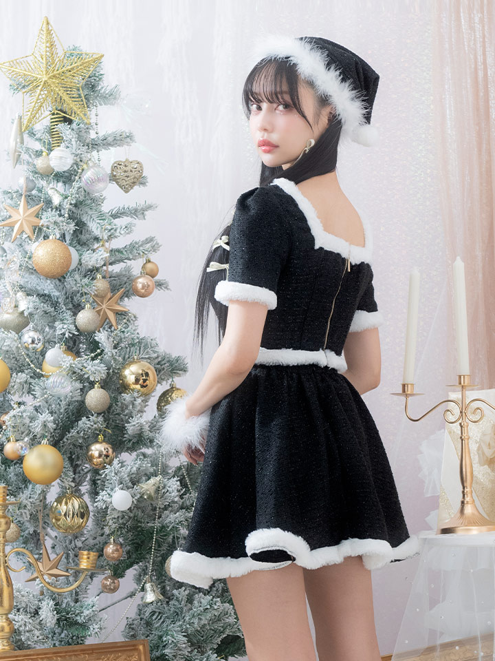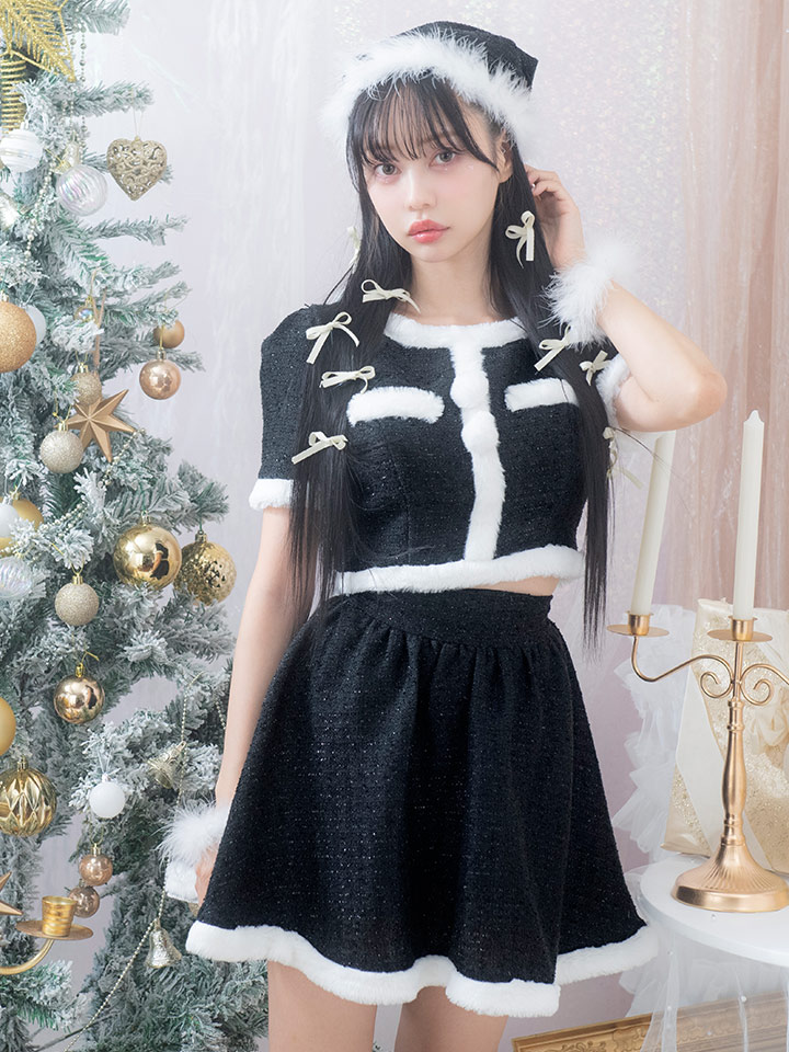 - > 【即日発送】【サンタコス 5点セット】【XS-Lサイズ/2カラー】ラメツイードセットアップサンタ[OF01]