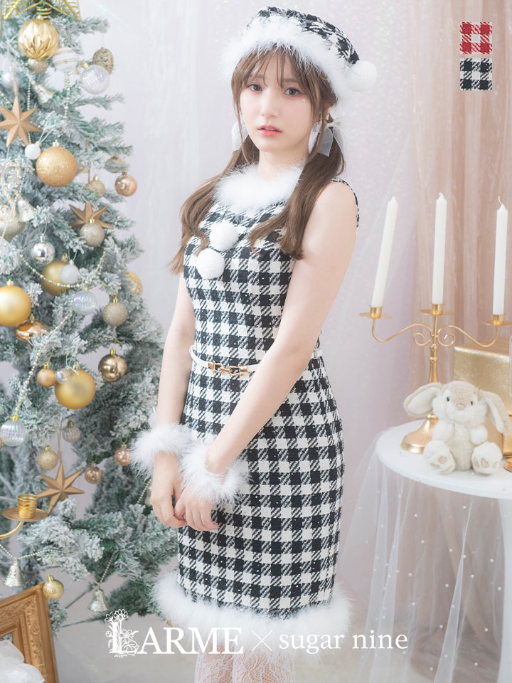 【サンタコス 5点セット】【XS-XLサイズ/2カラー】ギンガムチェック タイトワンピースサンタコスプレ[OF01]