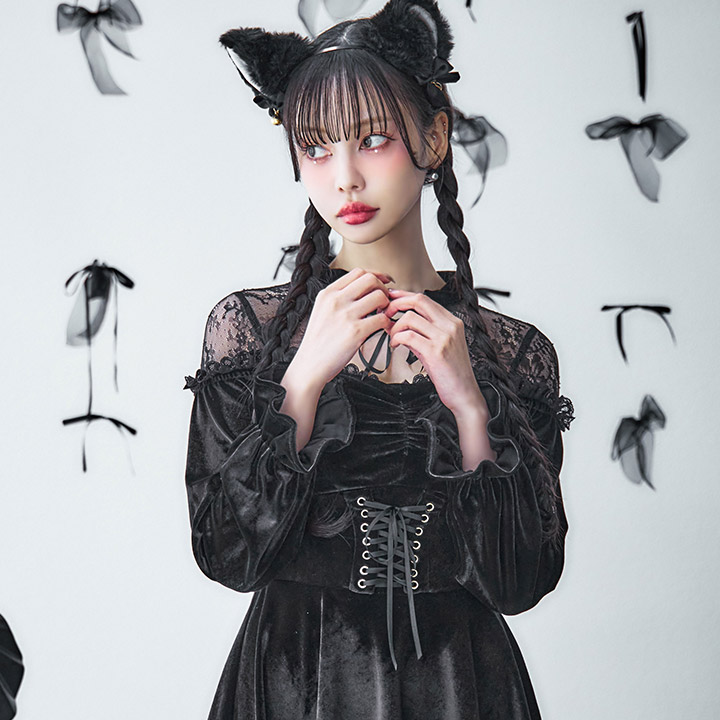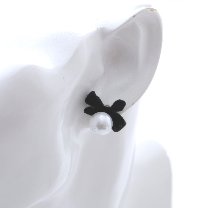 【アクセサリー:ピアス】ベロアリボン/パール/ピアス【Fサイズ/1カラー】[OF02] [HWPI062-2409]