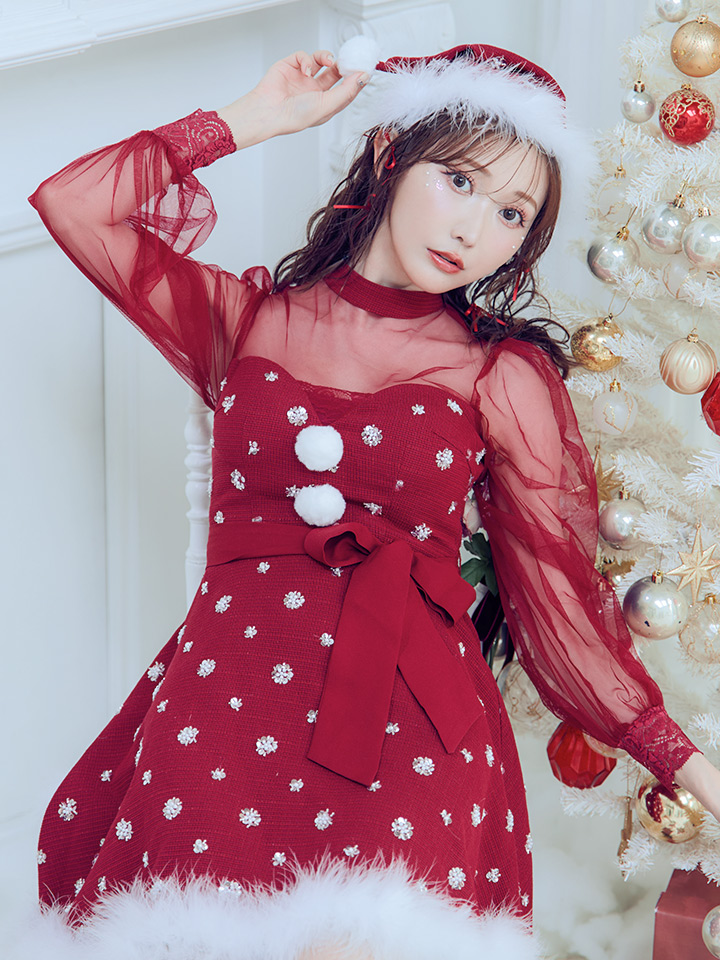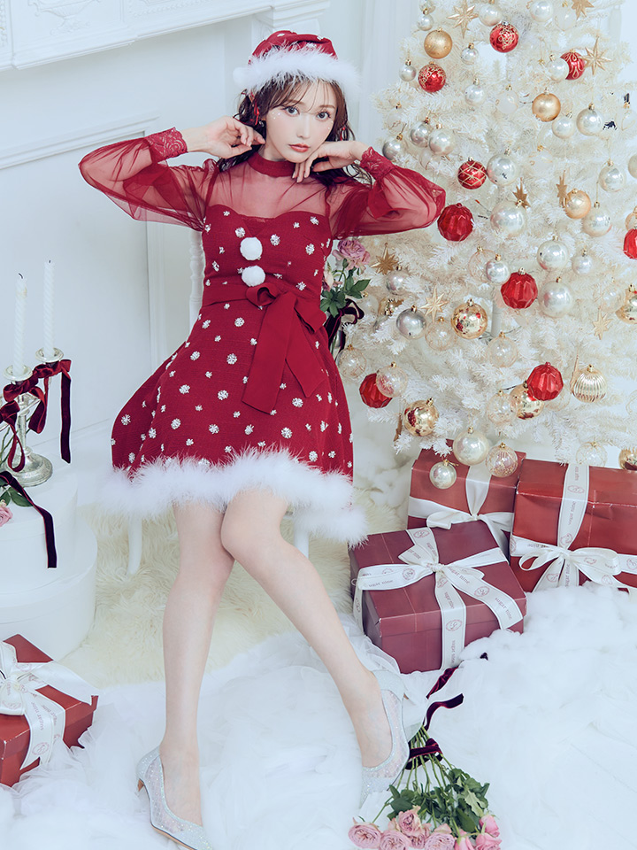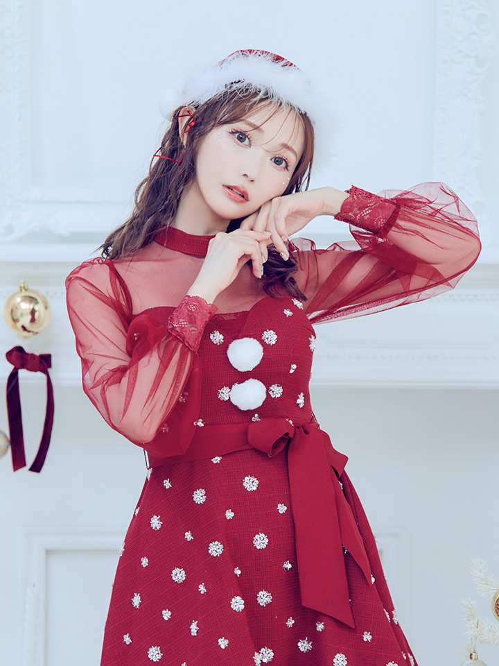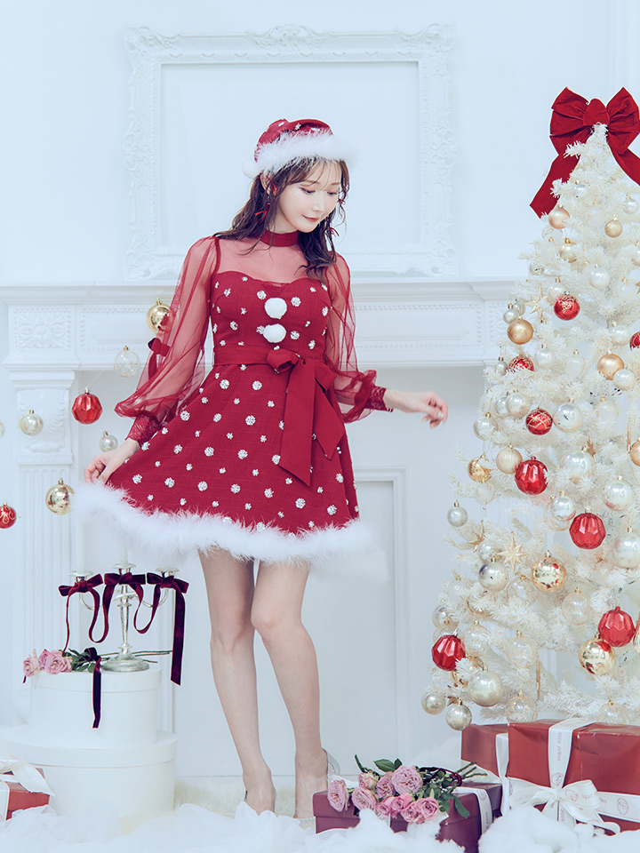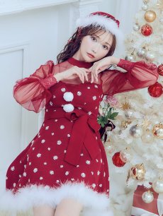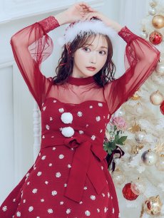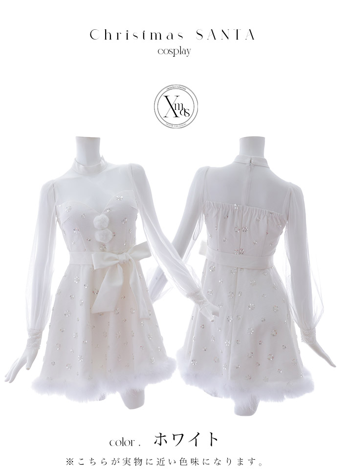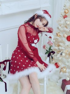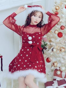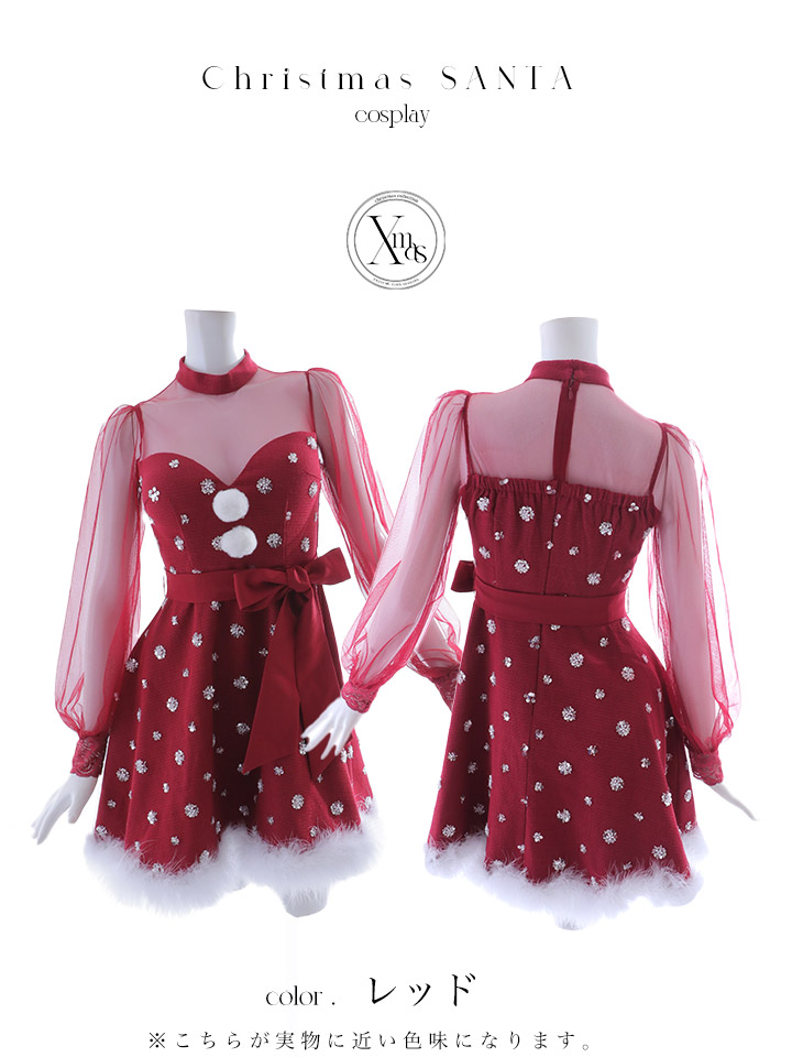 - > 【即日発送!】【サンタコス 4点セット】【XS-XLサイズ/2カラー】チュールロングスリーブハイネックサンタ[OF04]