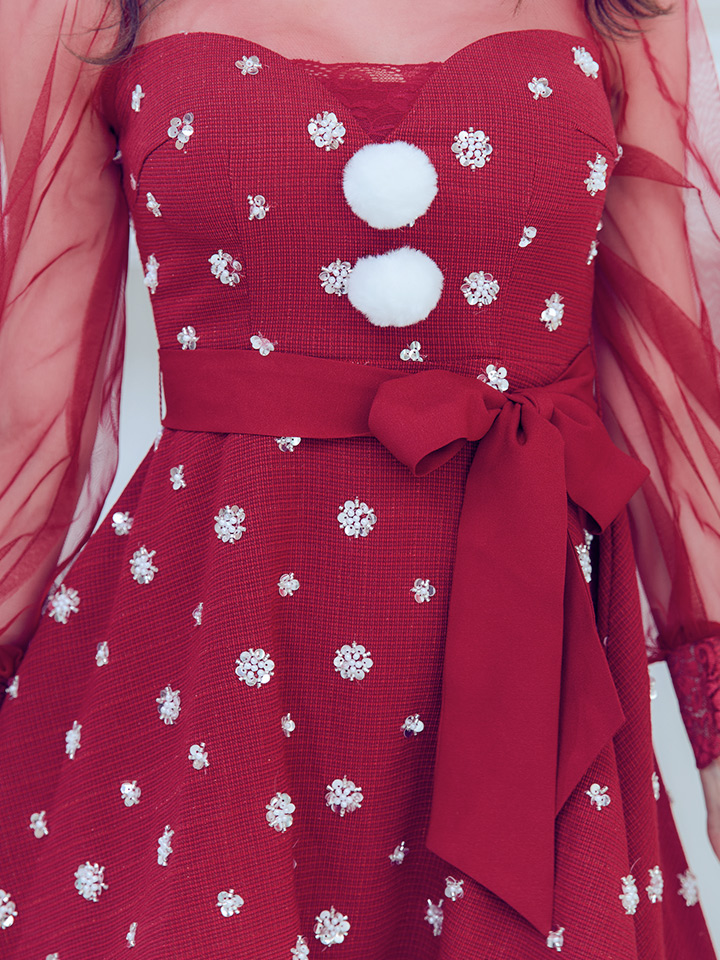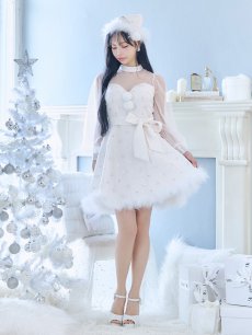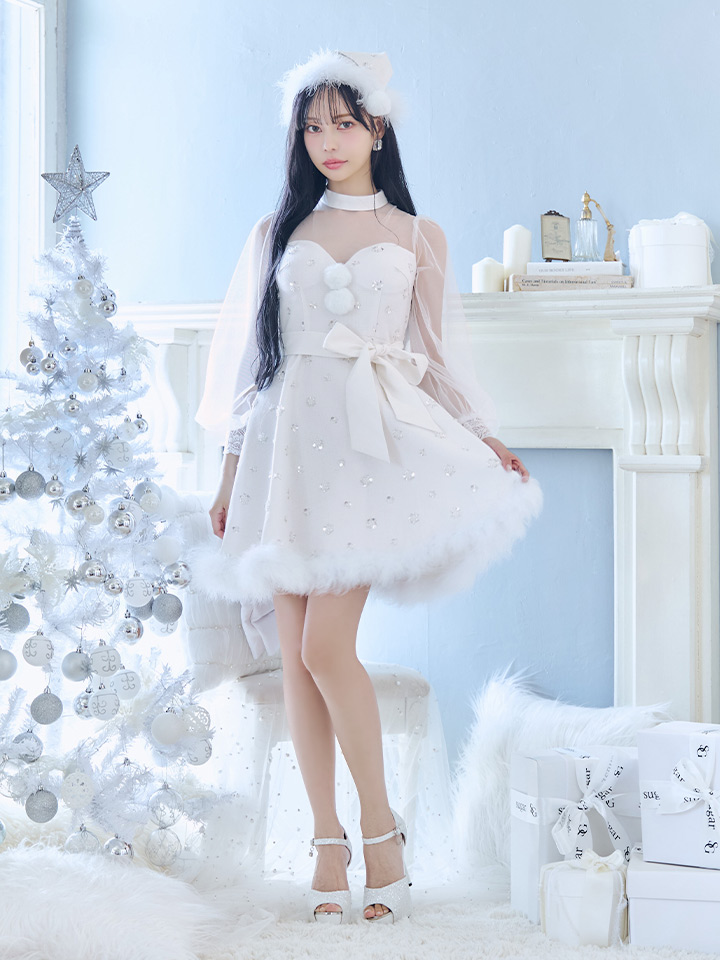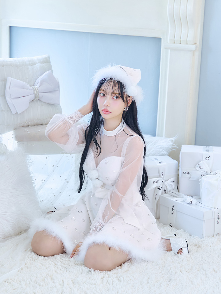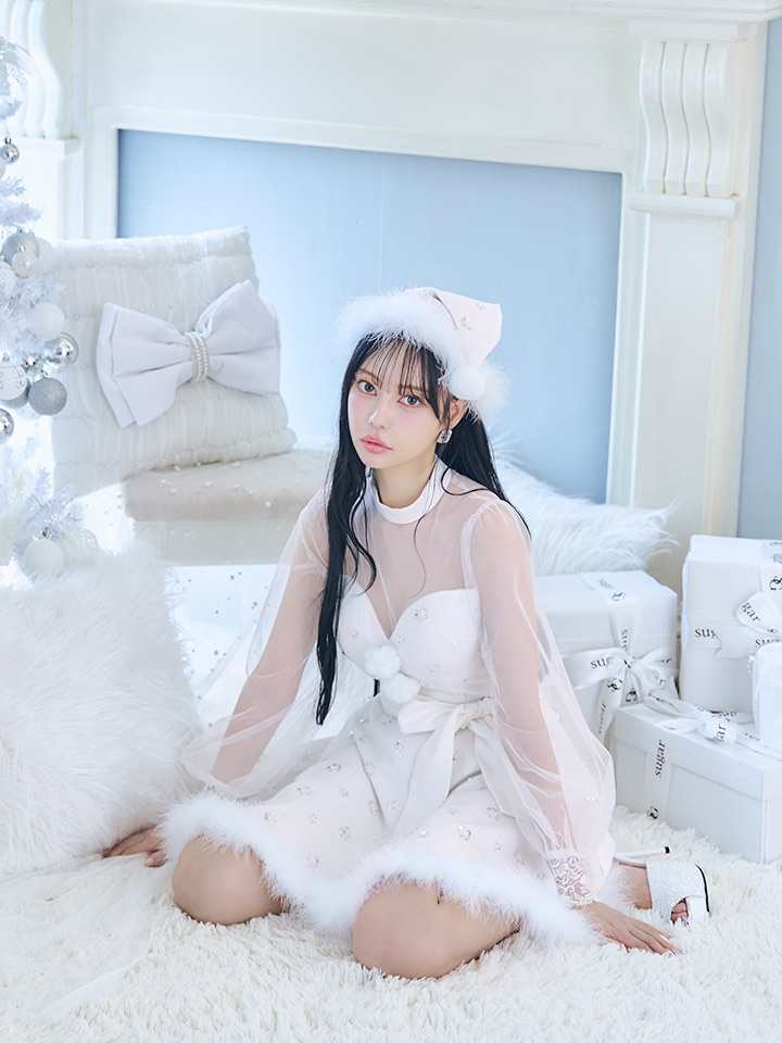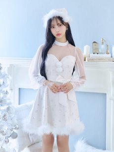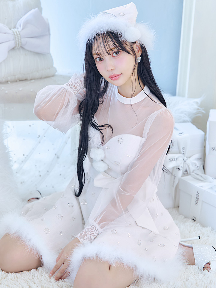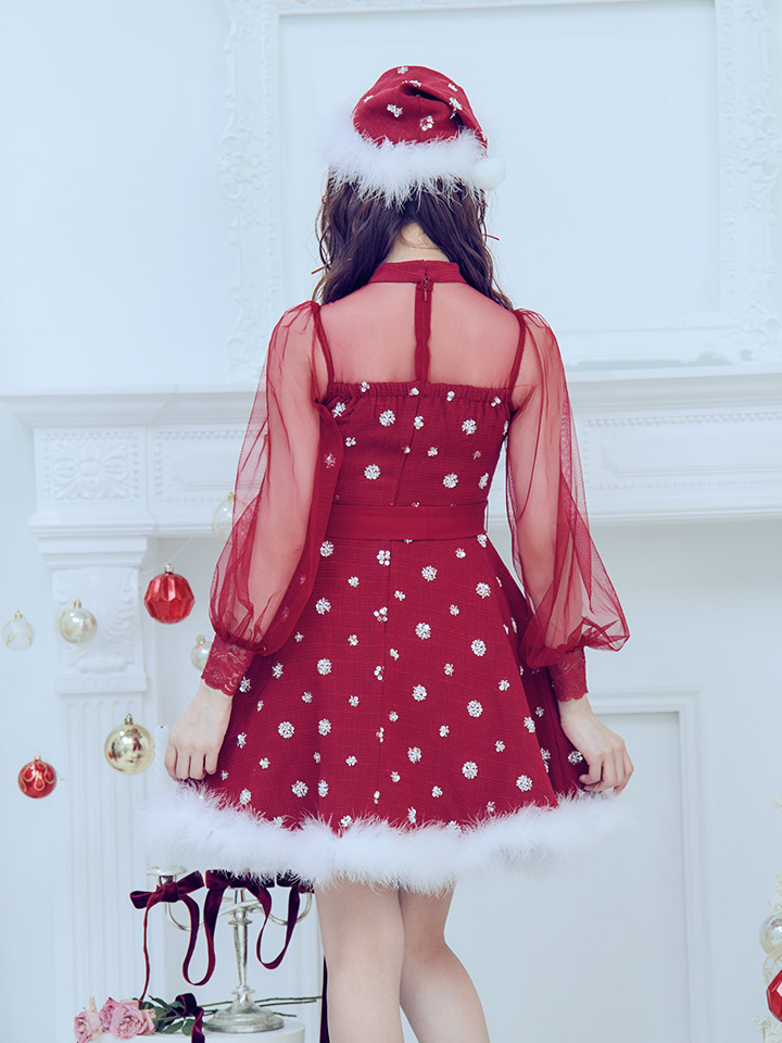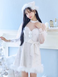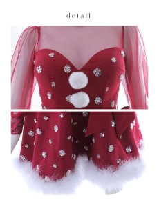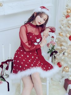 - > 【即日発送!】【サンタコス 4点セット】【XS-XLサイズ/2カラー】チュールロングスリーブハイネックサンタ[OF04]